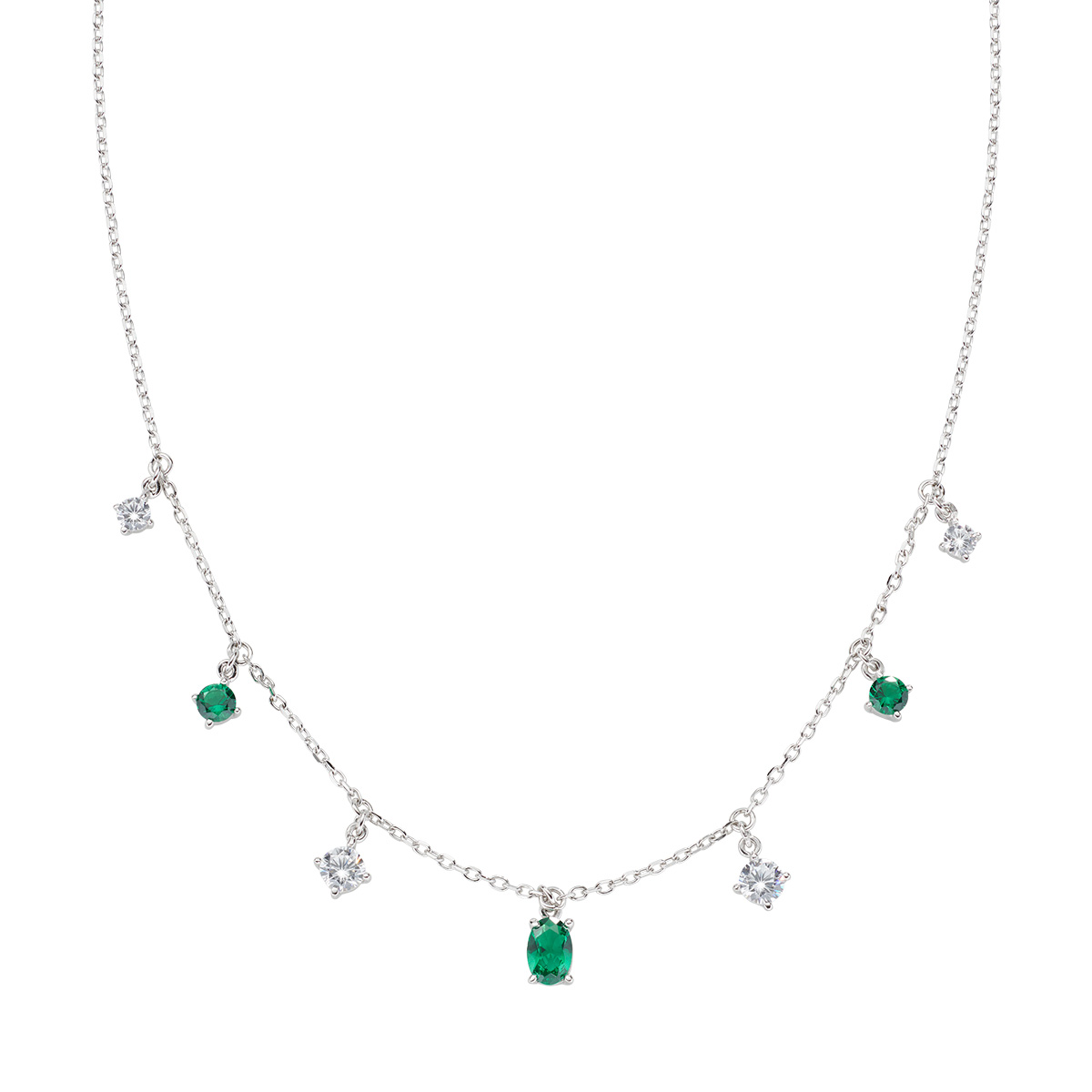 Sterling hõbedast kaelakee rohelise ja valge tsirkooniga - roodium - pikkus 38 + 5 cm - Ø 3/6 mm tsirkoonid.