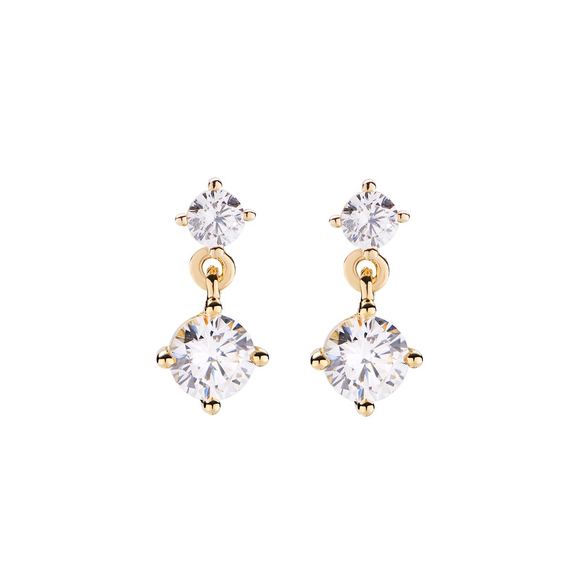 Valge tsirkooniumiga hõbedast kõrvarõngad - kuld - kõrgus 1 cm