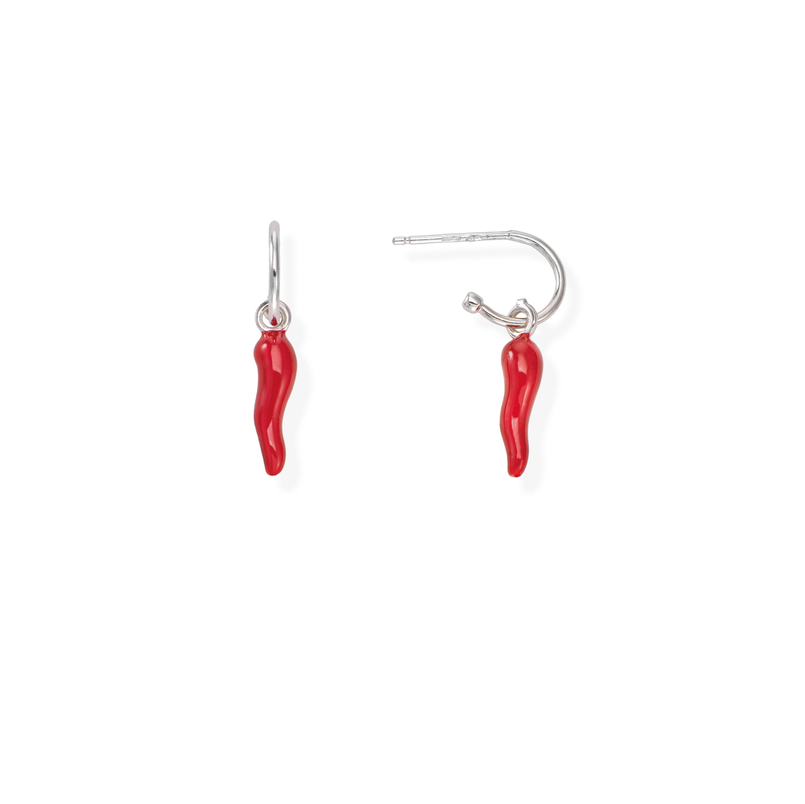 Hõbedast kõrvarõngad punase emailiga - roodium - pikkus 2,5 cm - sarm 1,5 cm