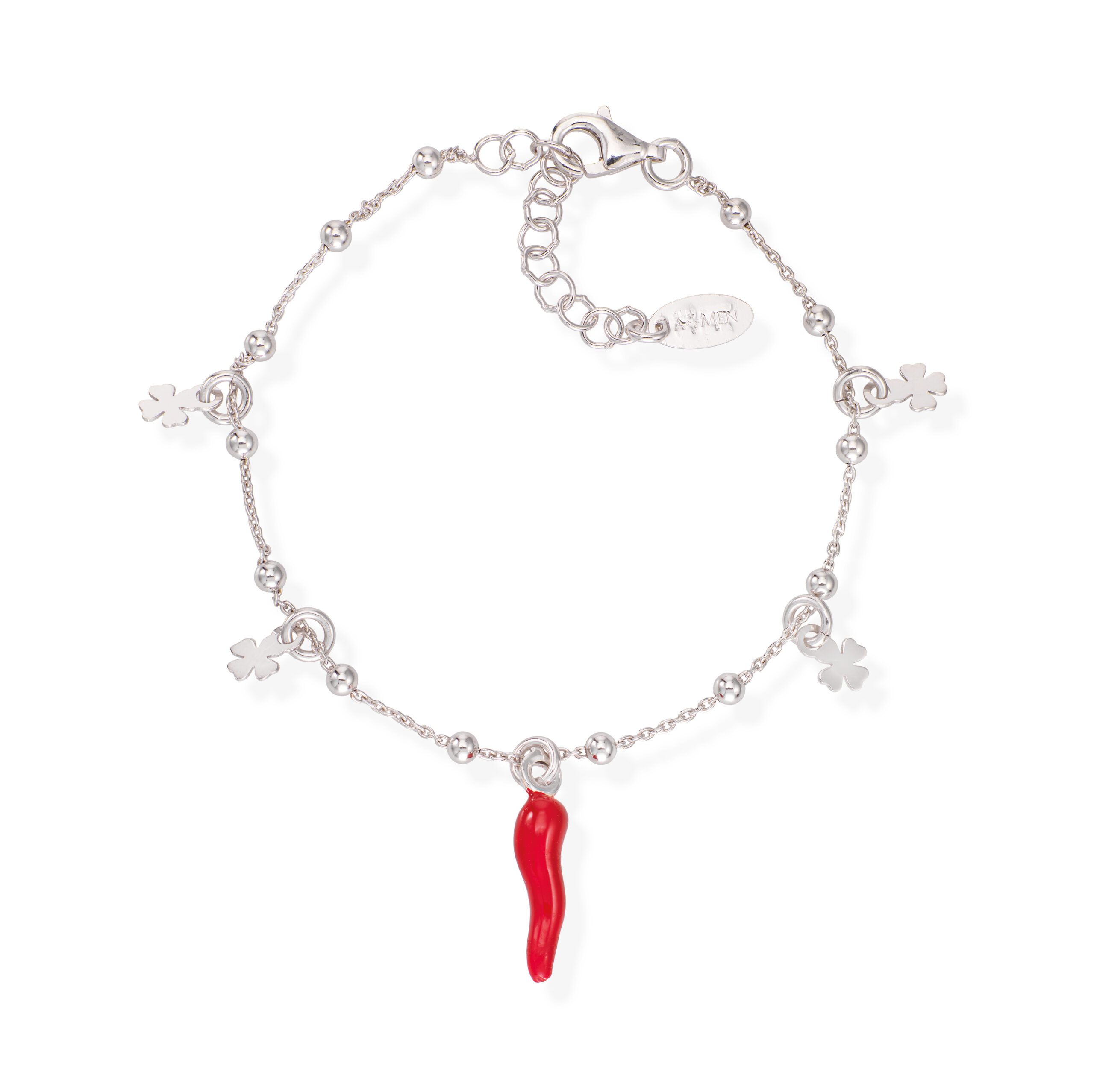 Sterling silver bracelet with red enamel – Rhodium – length 16 + 3 cm – charm 1,5 cm