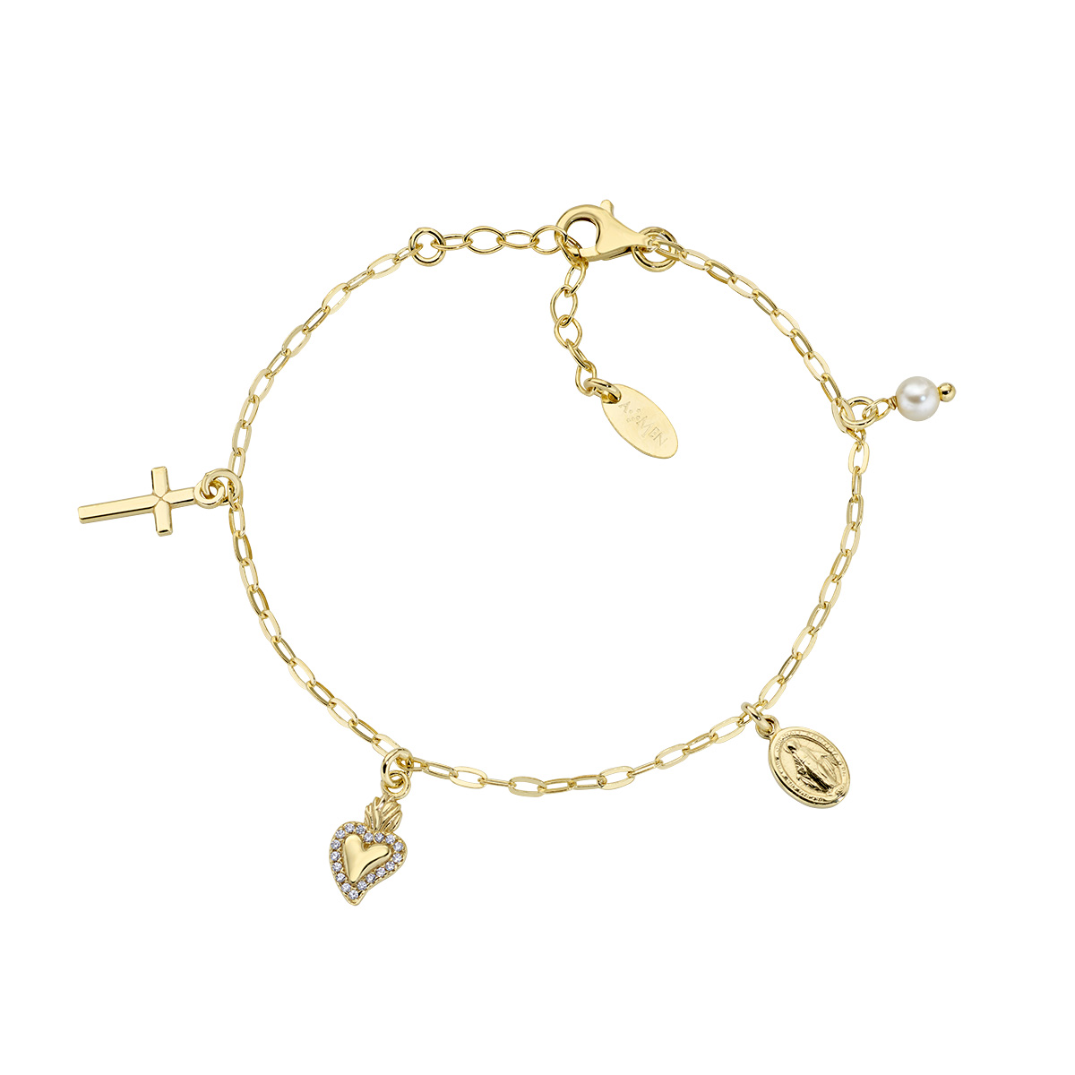 Sterling silver bracelet with crystal pearl and white zirconia – Gold – Length 16 + 3 cm – pearl Ø 4 mm – charm 8-10 mm