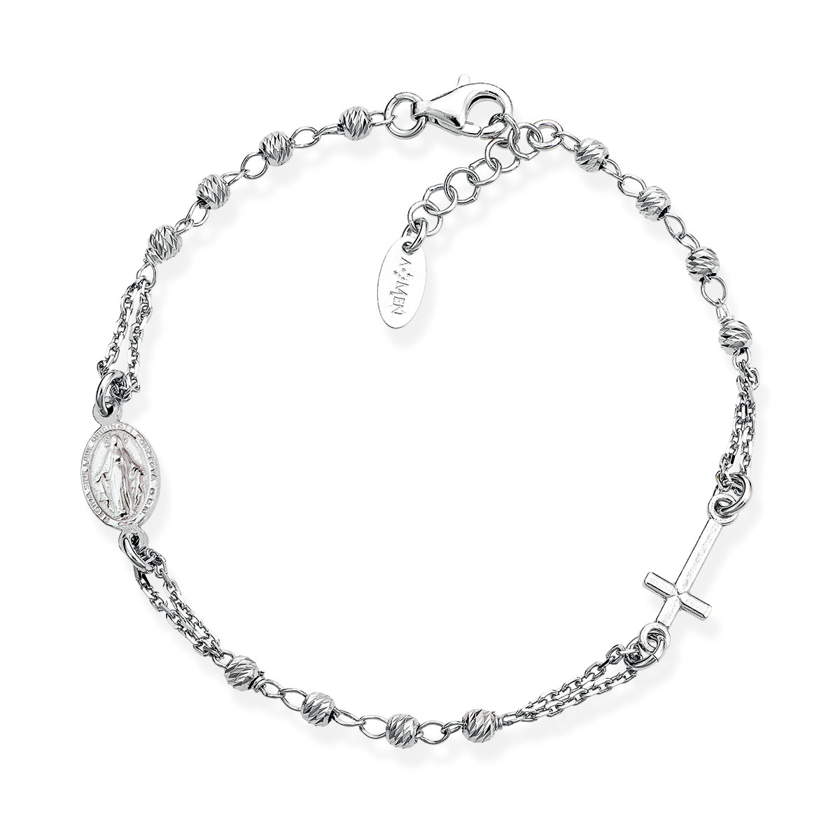 Sterling silver bracelet with multi-diamond cut silver beads – Rhodium – length 18 + 2 cm – Ø 3 mm beads