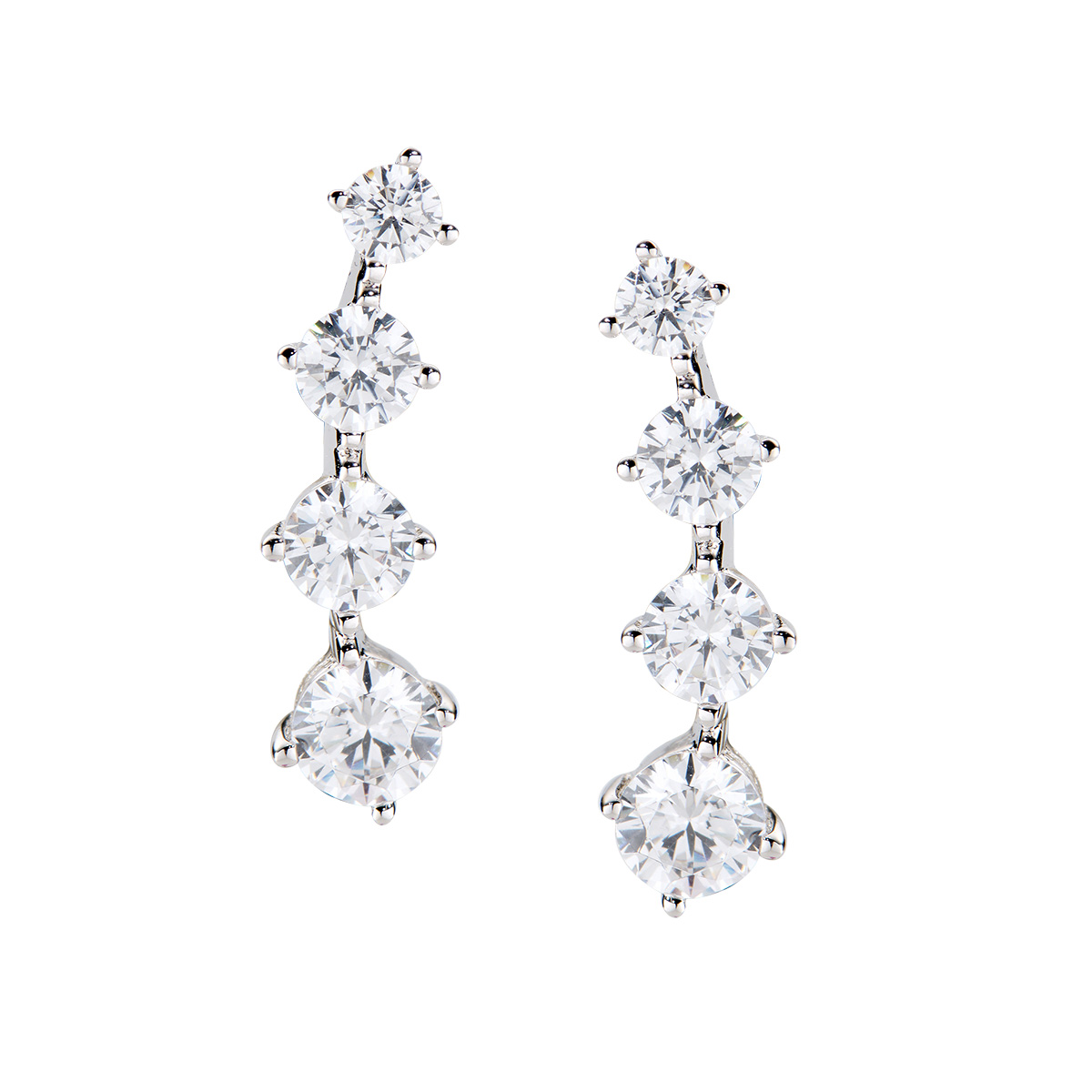 Sterling Silver Earrings with white zirconia – Rhodium – (Length 2 cm; stones Ø 2 – 5 mm)