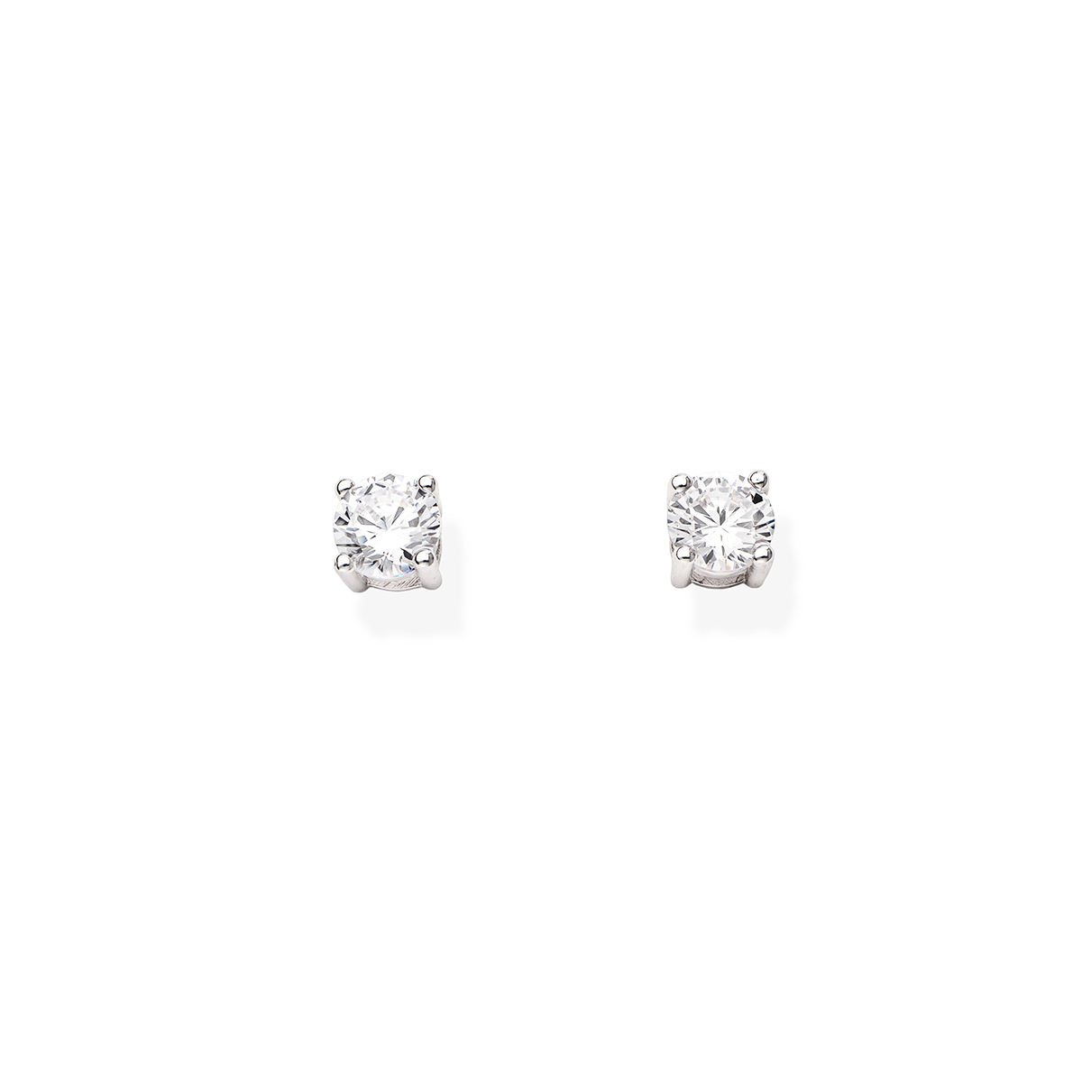 Sterling silver earrings with white zirconia – Rhodium – Ø 6 mm – Ø 6 mm zirconia