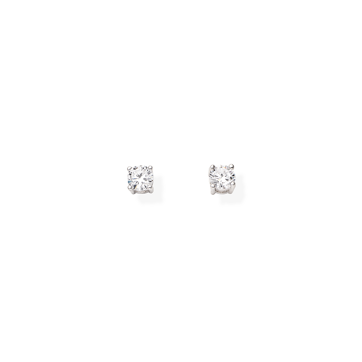 Sterling silver earrings with white zirconia – Rhodium – Ø 4 mm – Ø 4 mm zirconia