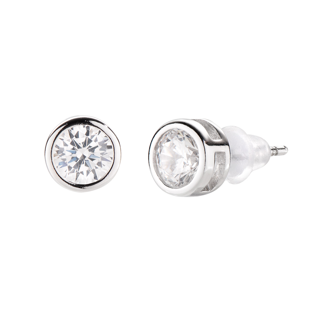 Sterling silver earrings with white zirconia – Rhodium – Ø 5 mm – Ø 5 mm zirconia