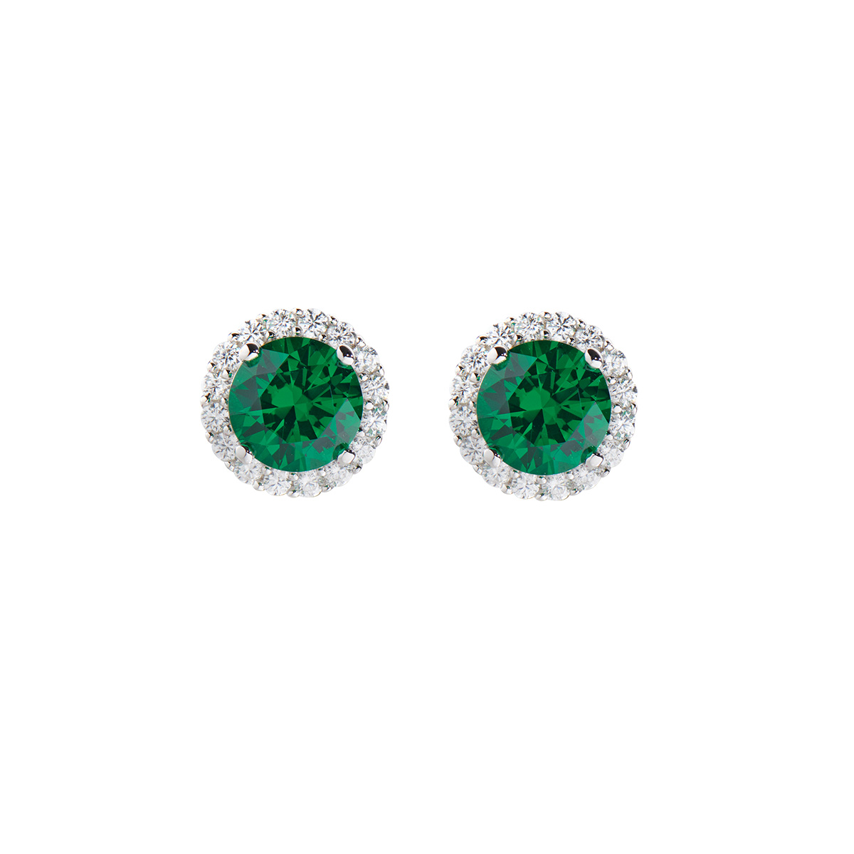 Sterling Silver Earrings with green and white zirconia – Rhodium – (stone Ø 5 mm)