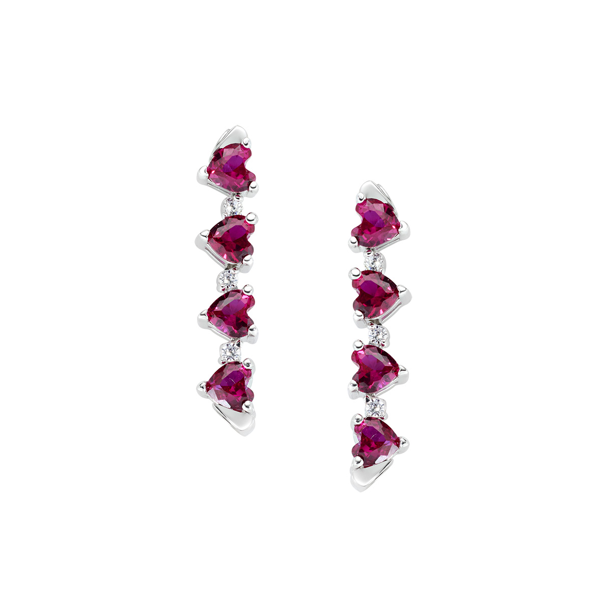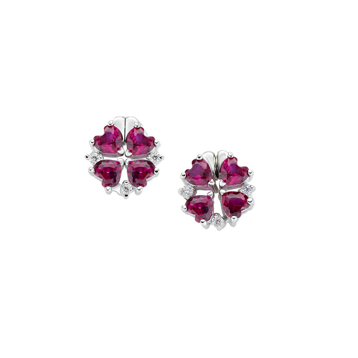 Sterling silver earrings with red and white zirconia – Rhodium – Closed Ø 8 mm /Length 2 cm