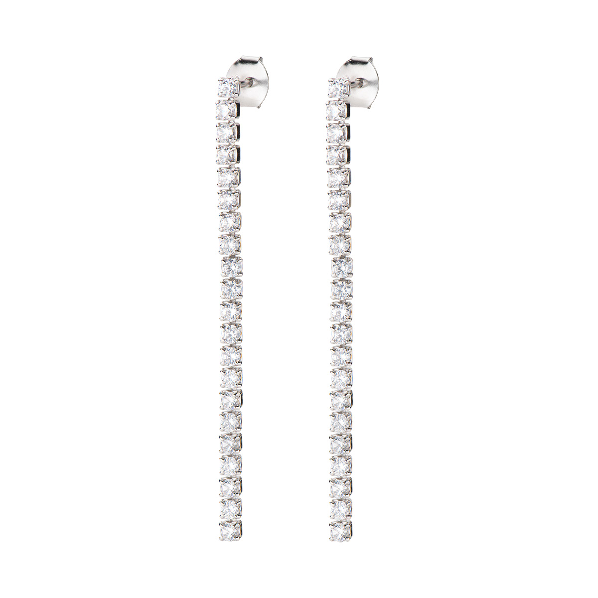 Sterling silver earrings with white zirconia – Rhodium – length 5 cm – Ø 2 mm zirconia