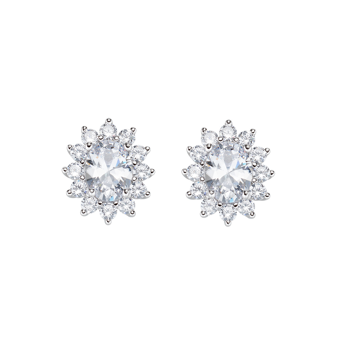 Sterling silver earrings with white zirconia – Rhodium – height 1,2 cm – Ø 7 mm zirconia