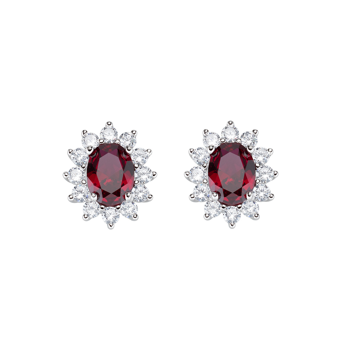 Sterling silver earrings with white and ruby zirconia – Rhodium – height 1,2 cm – Ø 7 mm zirconia