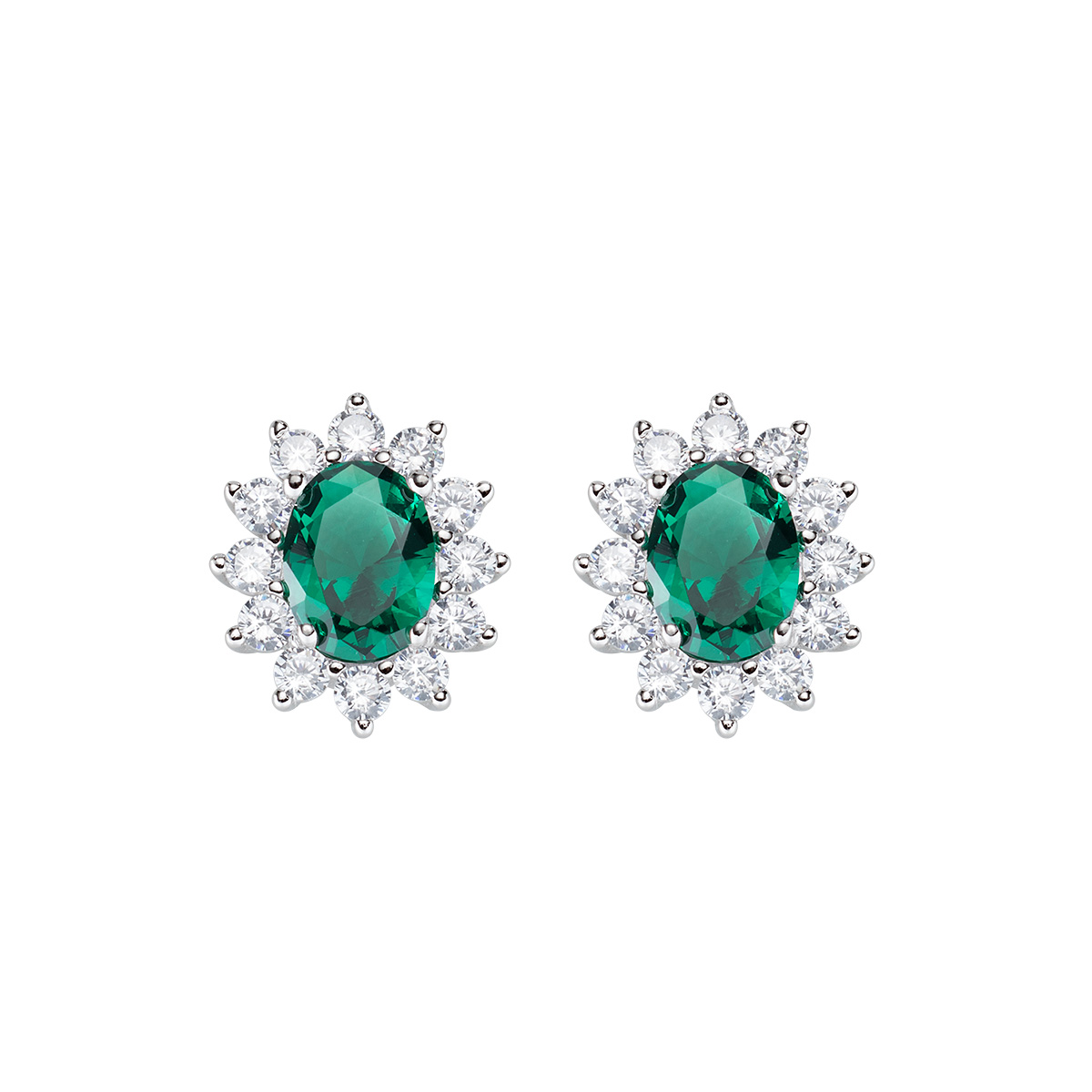 Sterling silver earrings white and green zirconia – Rhodium – (Ø 1,2 cm)