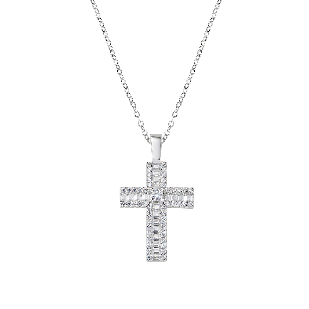 Sterling silver necklace with white zirconia – Rhodium – length 40 + 5 cm – charm 2 x 1,5 cm – stone ⌀ 2 mm