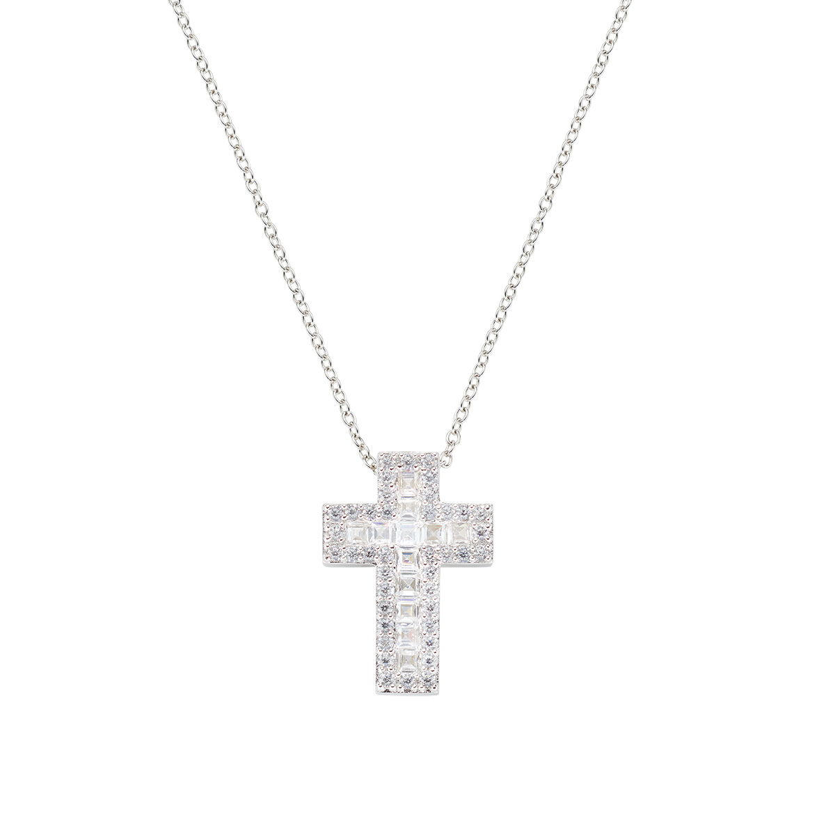 Sterling silver necklace with white zirconia – Rhodium – length 40 + 5 cm – charm 1,8 x 1,3 cm