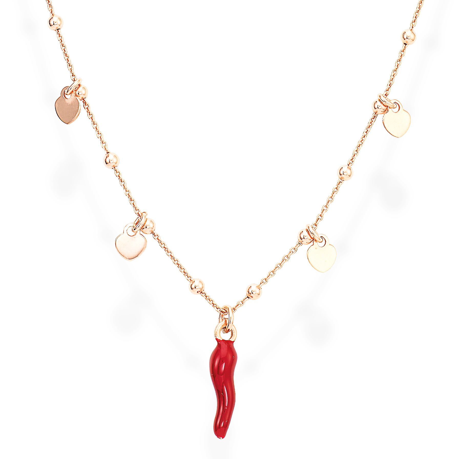 Sterling silver necklace with red enamel – Rosé – length 42 + 3 cm – charm 1,5 cm