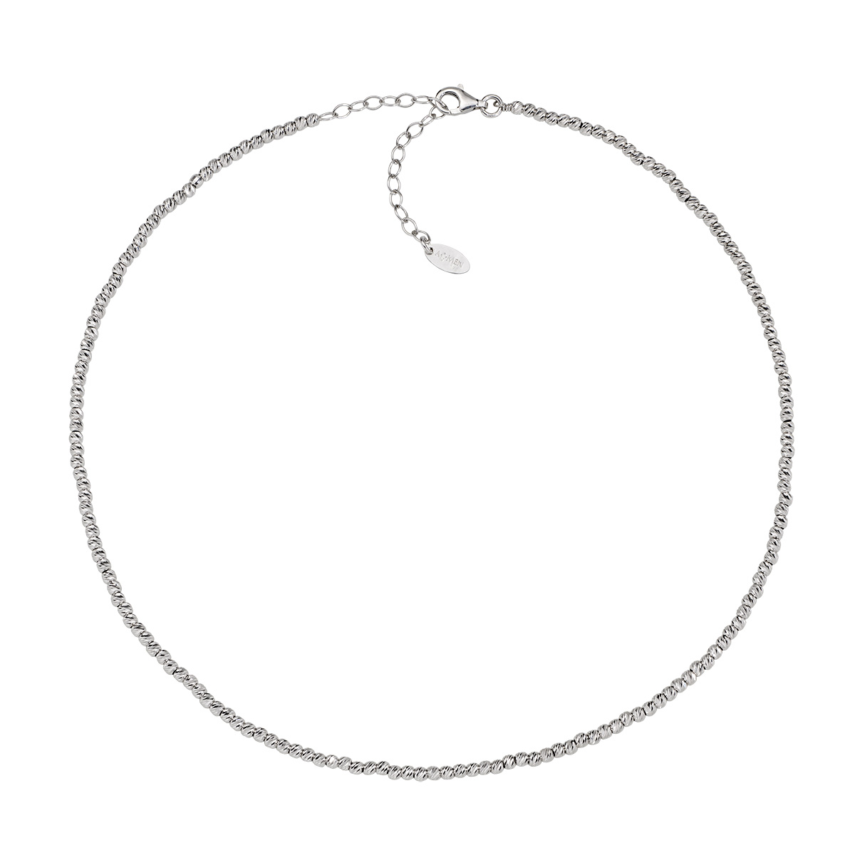 Sterling silver necklace – Rhodium – length 36 + 5 cm – Ø 2,5 mm multi diamond-cut beads