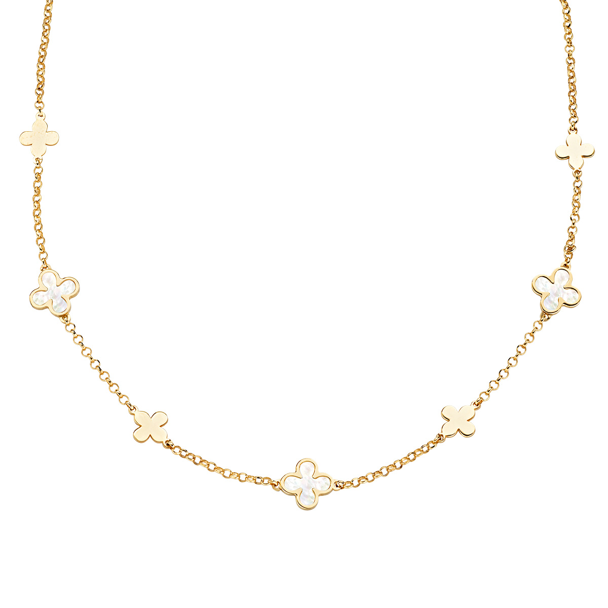 Sterling silver necklace and white mother of pearl – Gold – (Length 40 + 4 cm)