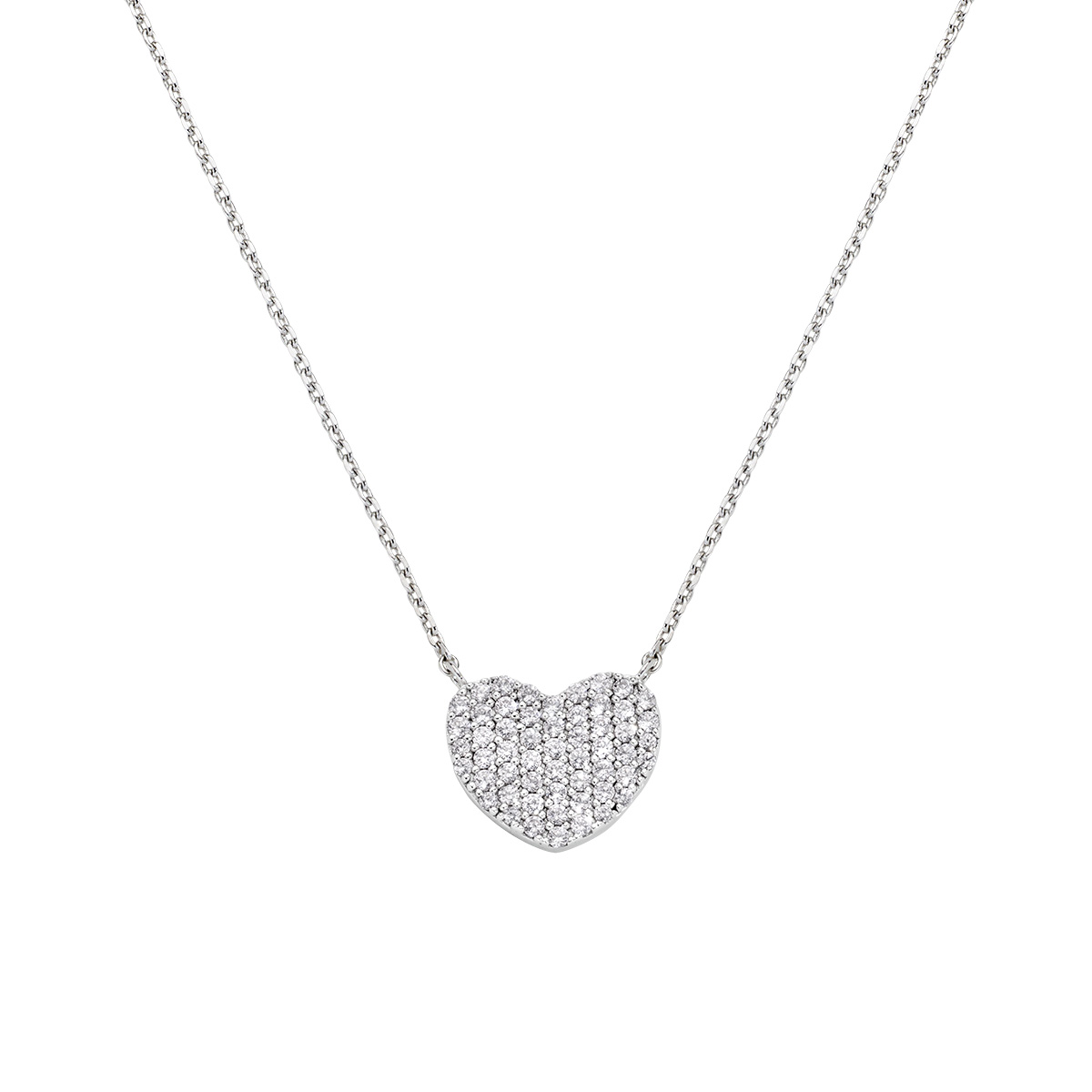 Sterling silver necklace with white zirconia – Rhodium – Length 40 + 5 cm – Charm 1 x 1,2 cm
