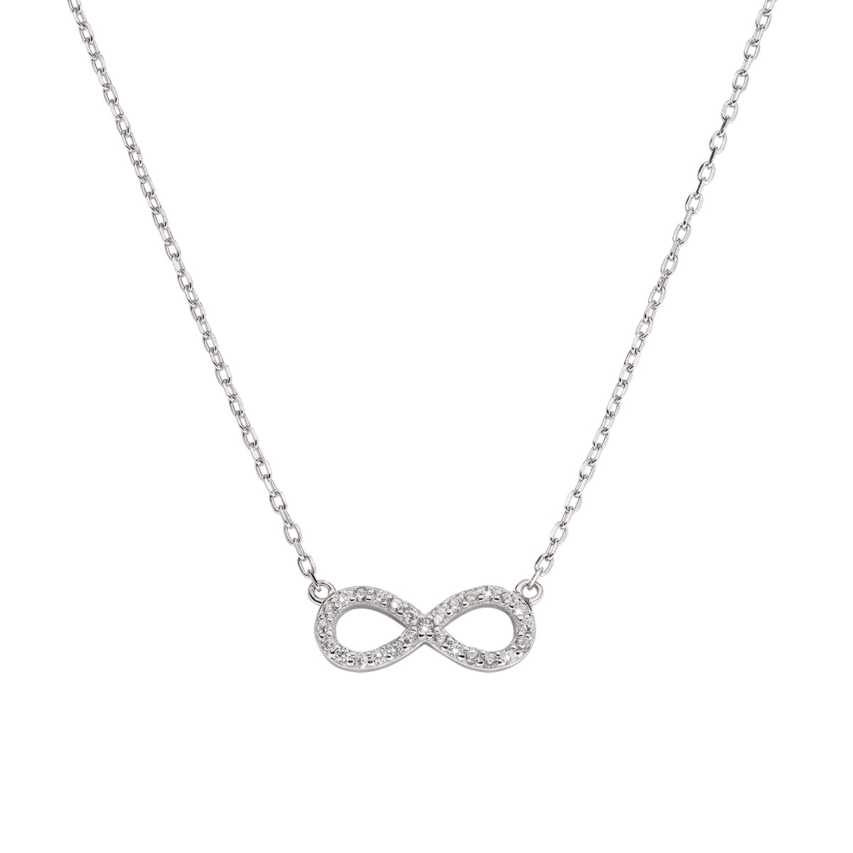 Sterling silver necklace with white zirconia – Rhodium – length 40 + 5 cm – charm width 1,4 cm