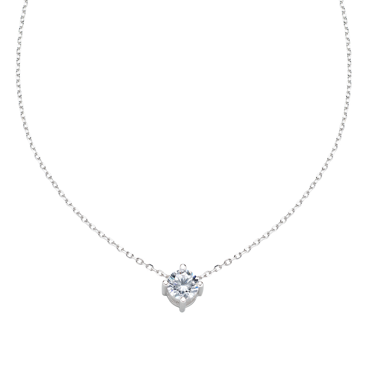 Sterling silver necklace with white zirconia – Rhodium – length 40 + 5 cm – Ø 5 mm zirconia charm
