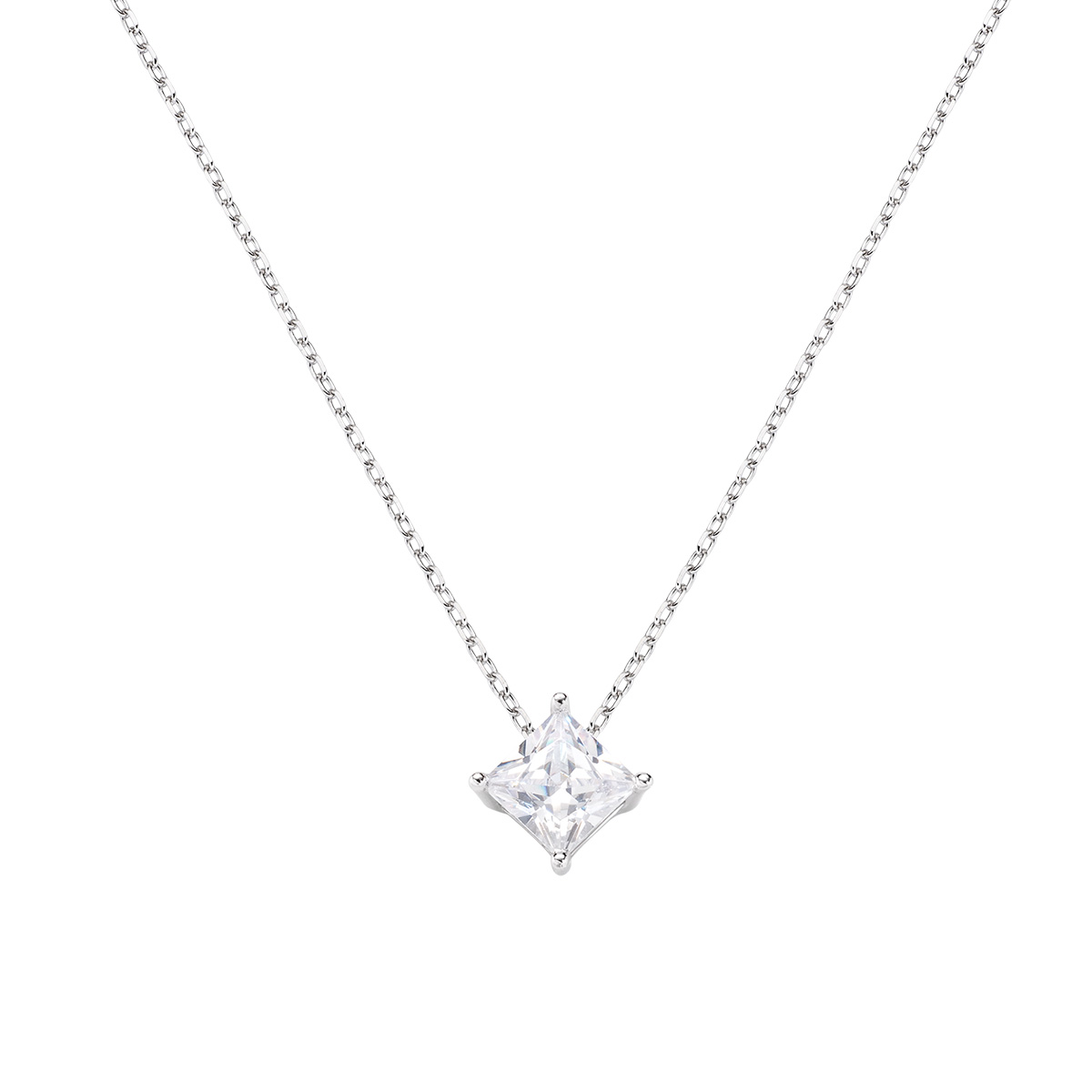 Sterling silver necklace with white zirconia – Rhodium – length 40 + 5 cm – 5 x 5 mm zirconia charm