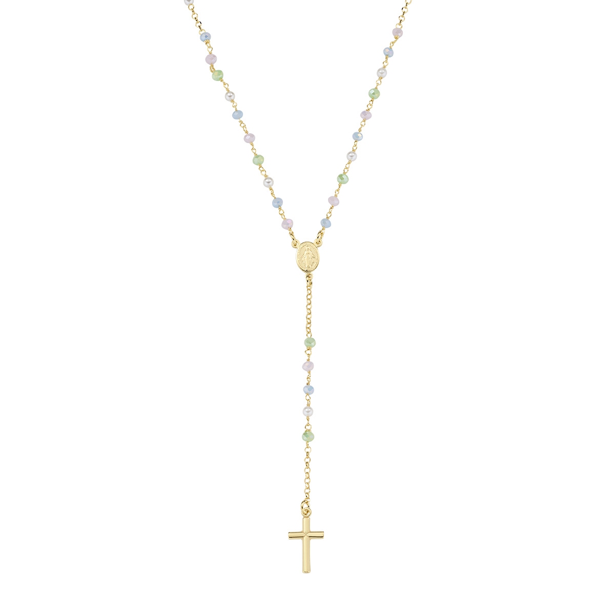 Sterling silver necklace with multicolor crystals and crystal pearls – Gold – length 48 + 2 cm – Ø 3 mm beads