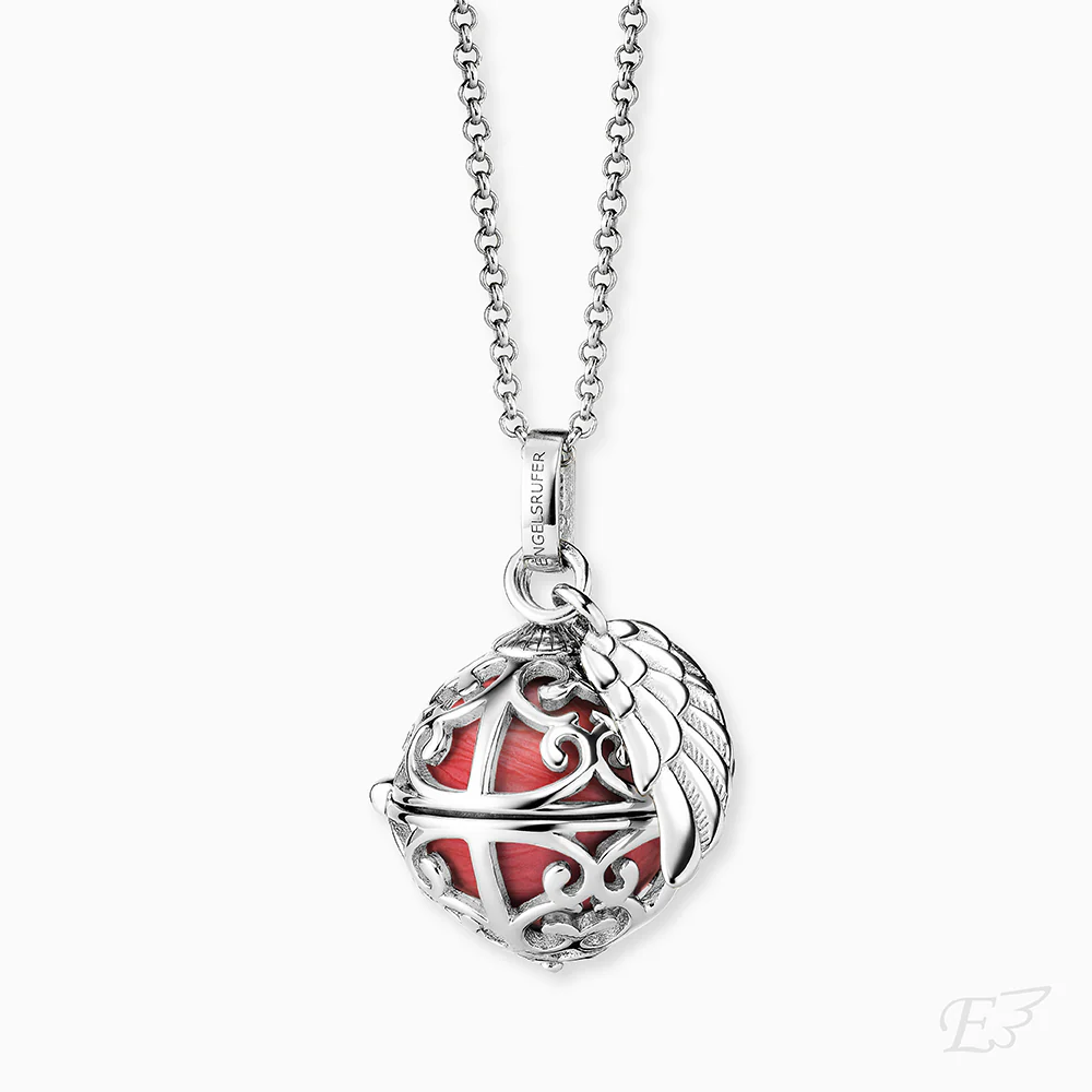 Necklace Engelsrufer with wing silver rhod. pl. | Soundb.p. red | XS 14mm | 45 + 5cm Red is a warm colour which