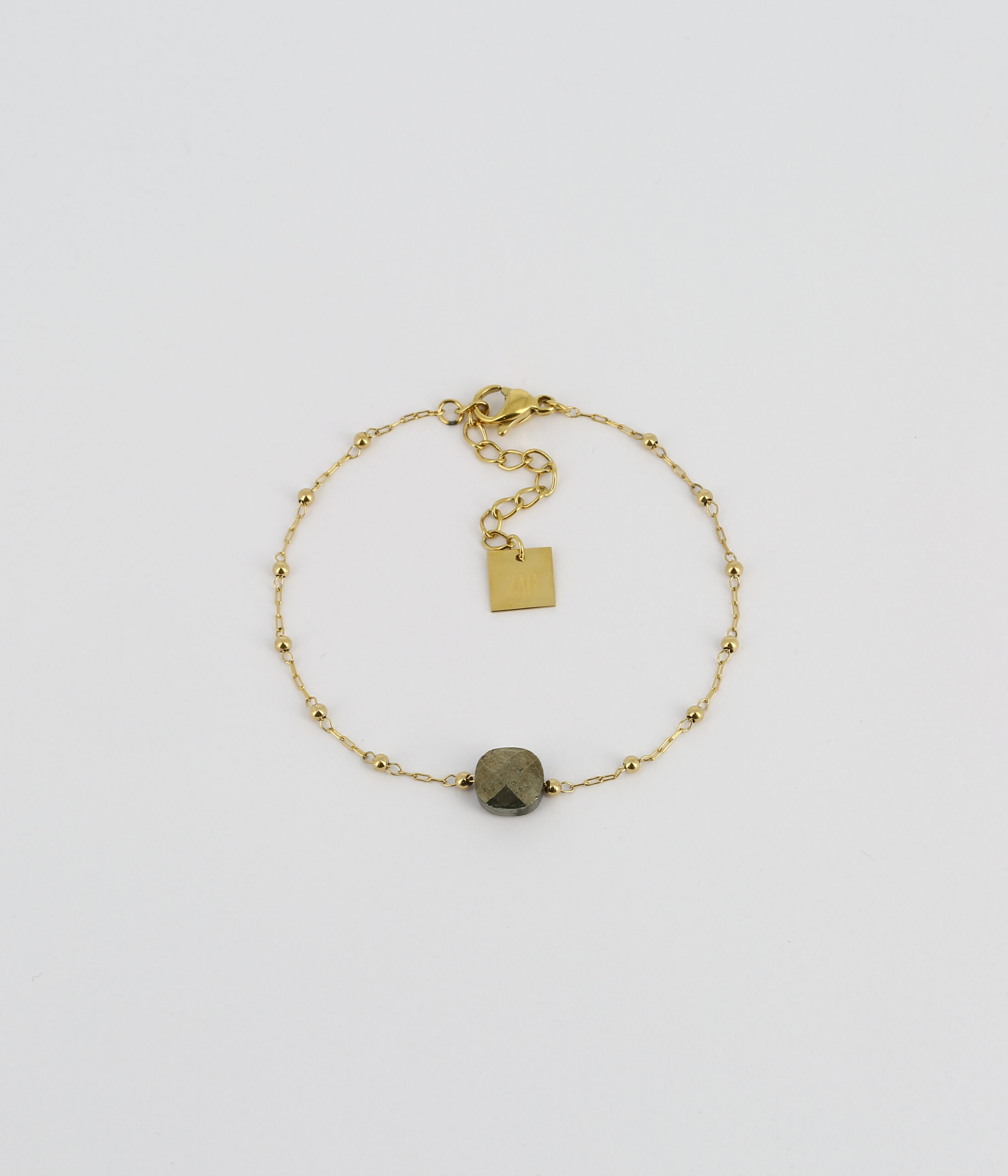 Pablo bracelet, gold-plated steel with pyrite, 15+3cm