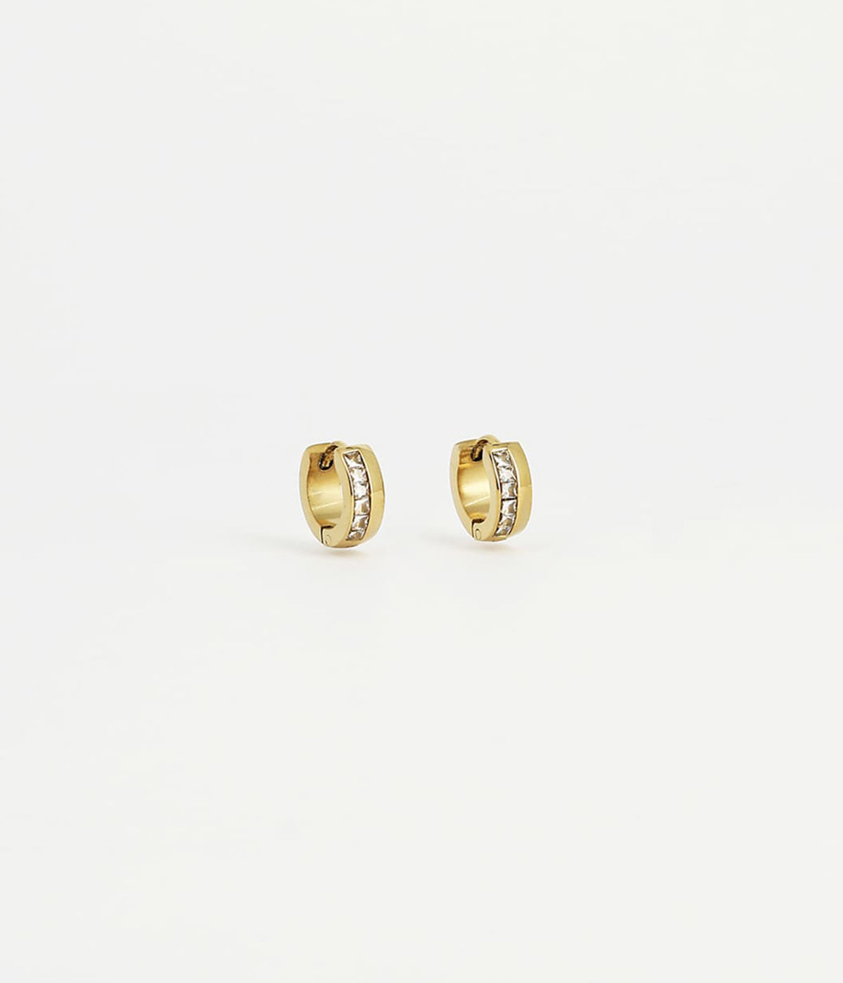 First EARRING GOLD PLATED STEEL zirconium setting d10mm