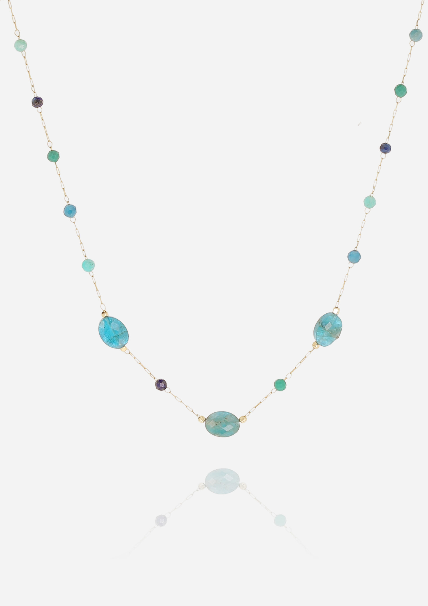 NECKLACE–SHORT–GOLD PLATED STEEL–apatite–38+5cm