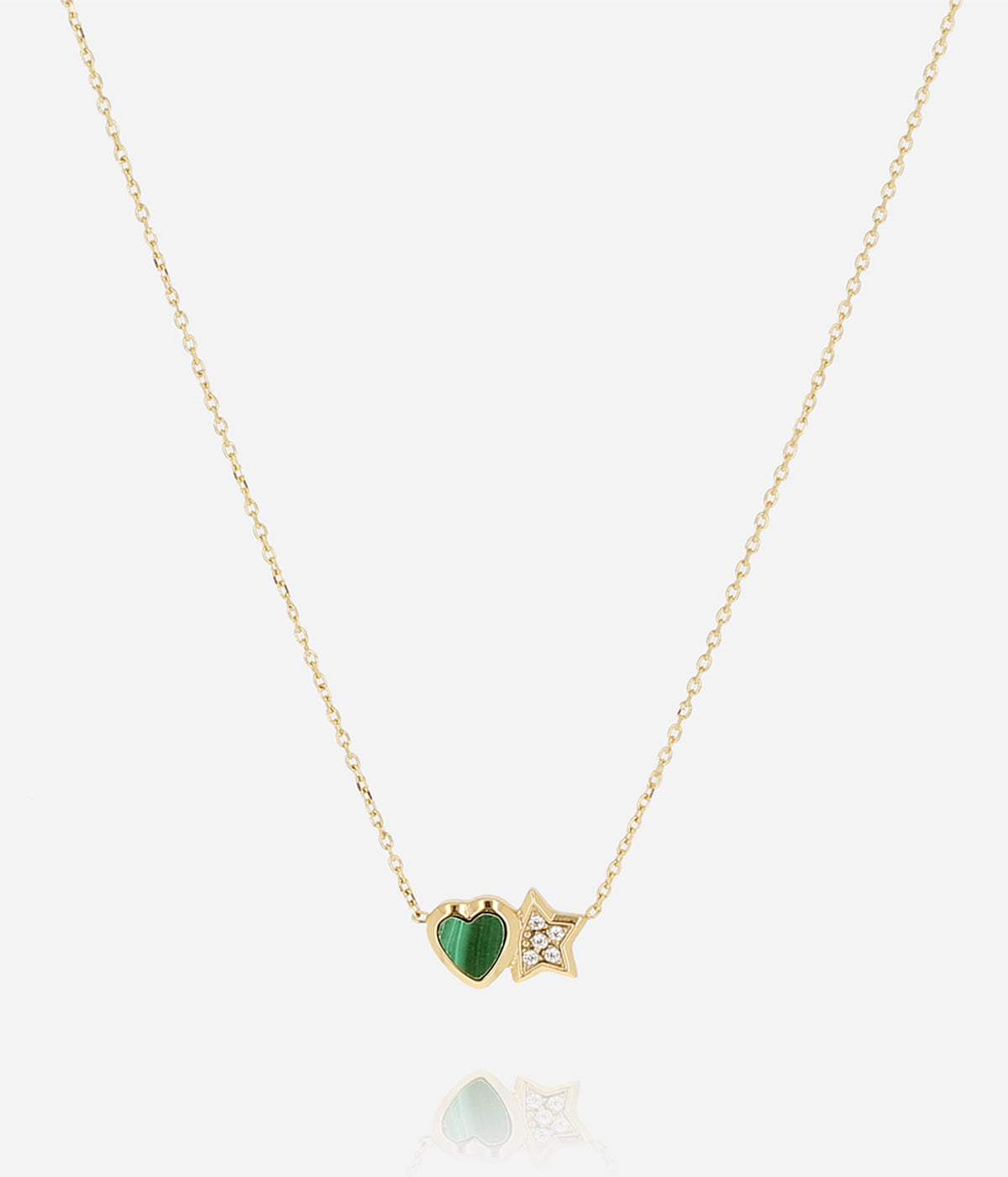 Necklace–Sassari–gold–zirconium+malachite–38+5cm