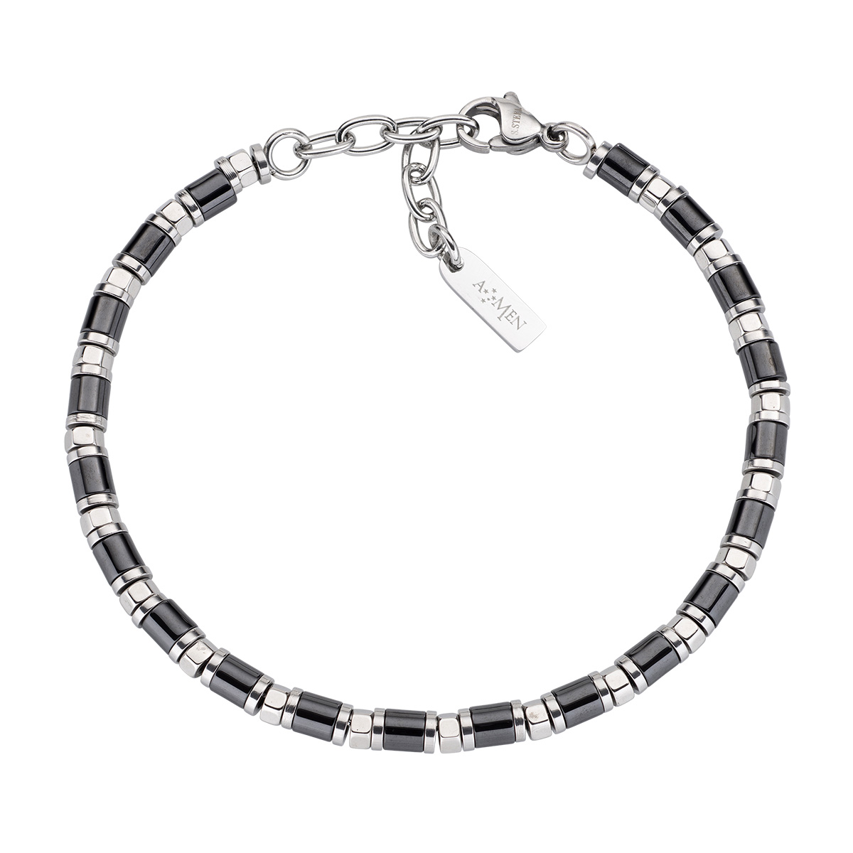 Stainless steel bracelet with black ceramic – Steel/Black – length 18 + 3 cm