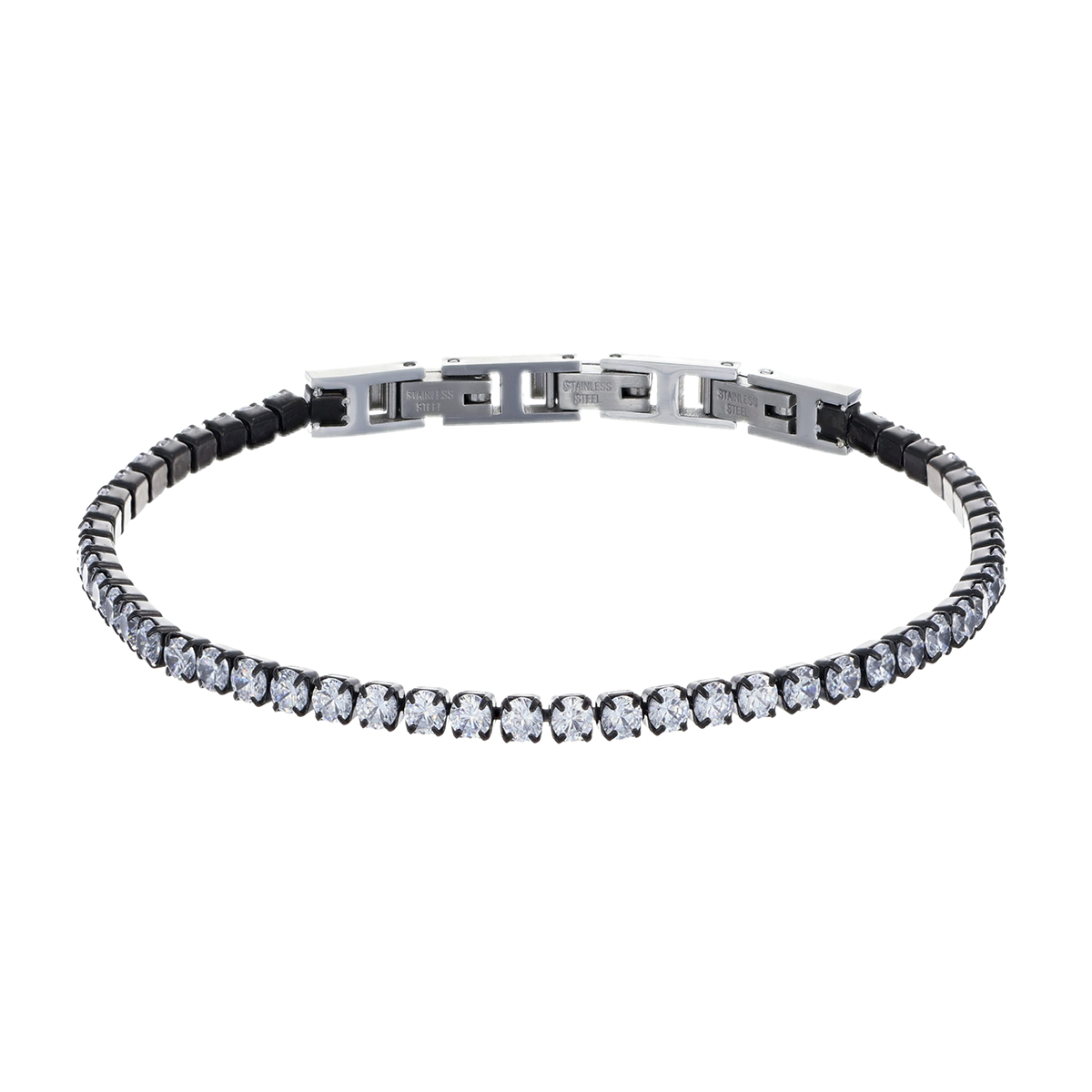 Stainless steel bracelet with white zirconia – Black PVD – length 19 + 1 + 1 cm – Ø 3 mm zirconia
