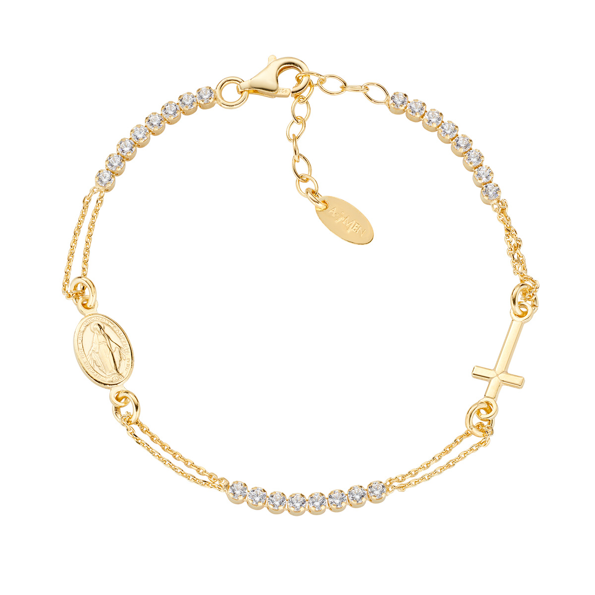 Sterling silver bracelet with white zirconia – Gold – length 16 + 3 cm