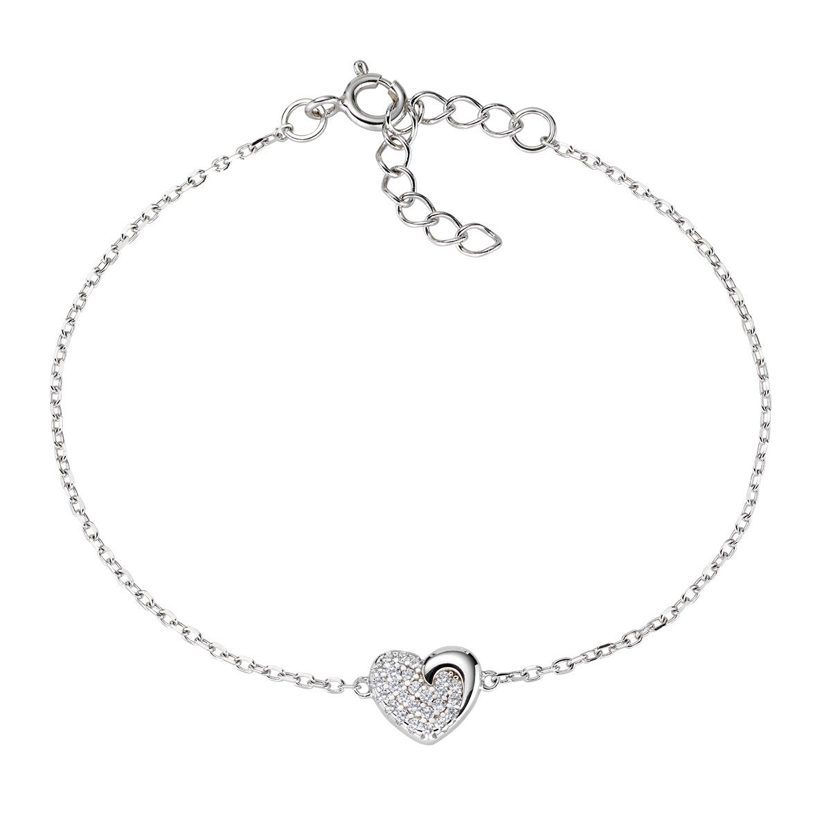 Sterling silver bracelet with white zirconia – Rhodium – length 16 + 3 cm – charm 8 mm