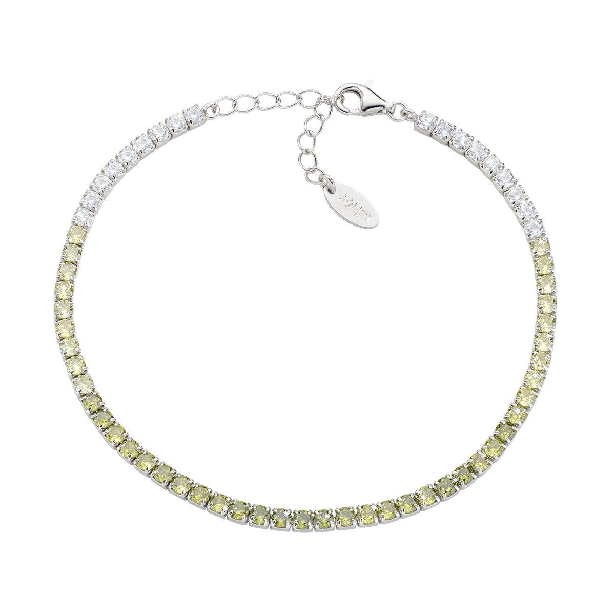 Sterling silver bracelet with multicolor olive green and white zirconia – Rhodium – Length 17 + 3 cm – zirconia Ø 2,5 mm