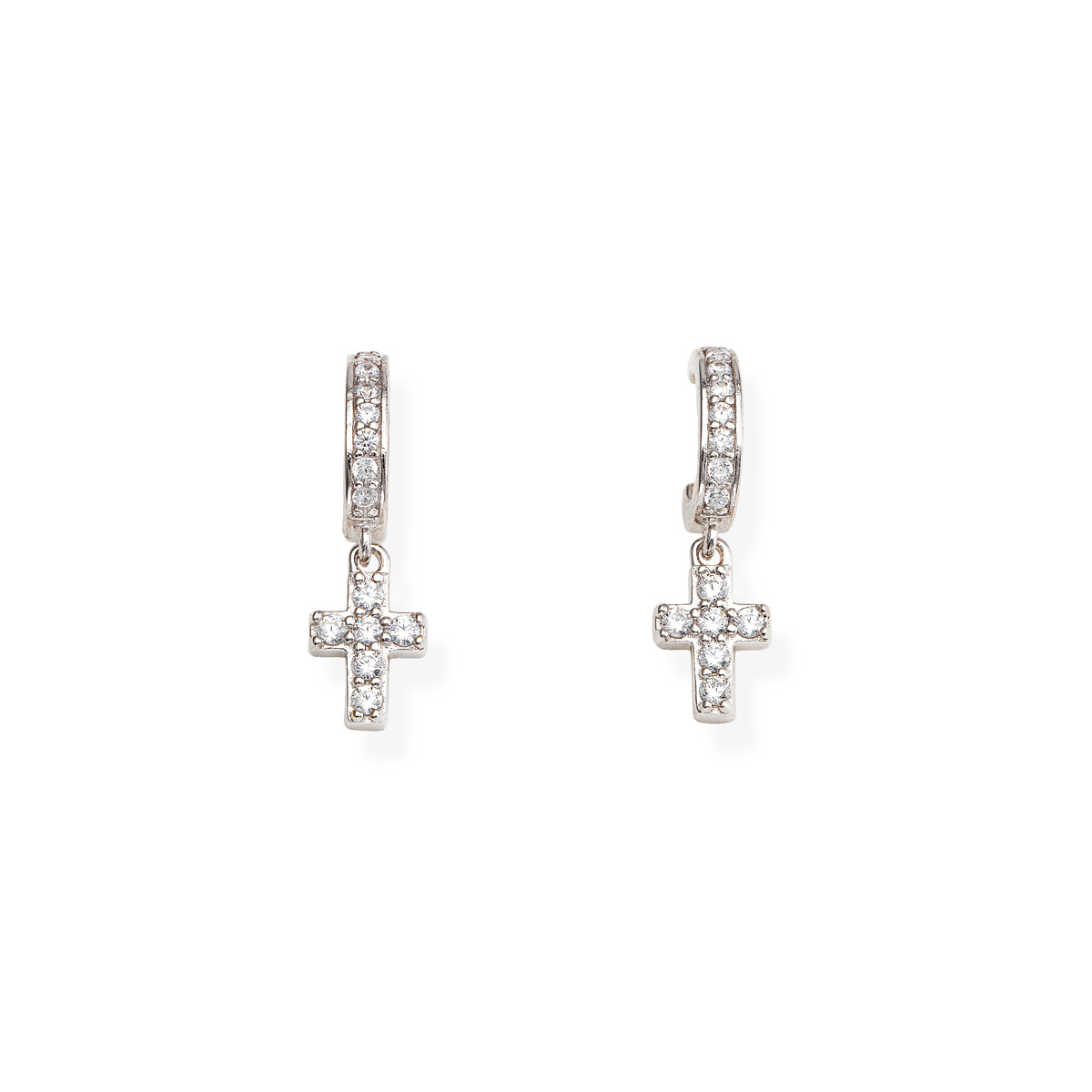Sterling silver earrings with white zirconia – Rhodium – length 2 cm – charm 8 mm