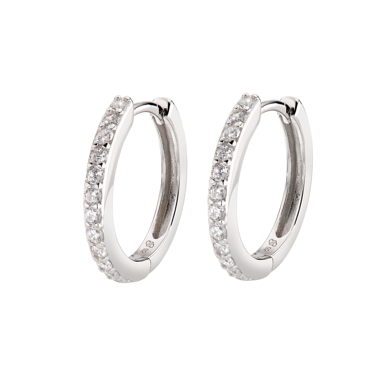 Sterling silver earrings with black zirconia – Rhodium – Ø 1 cm