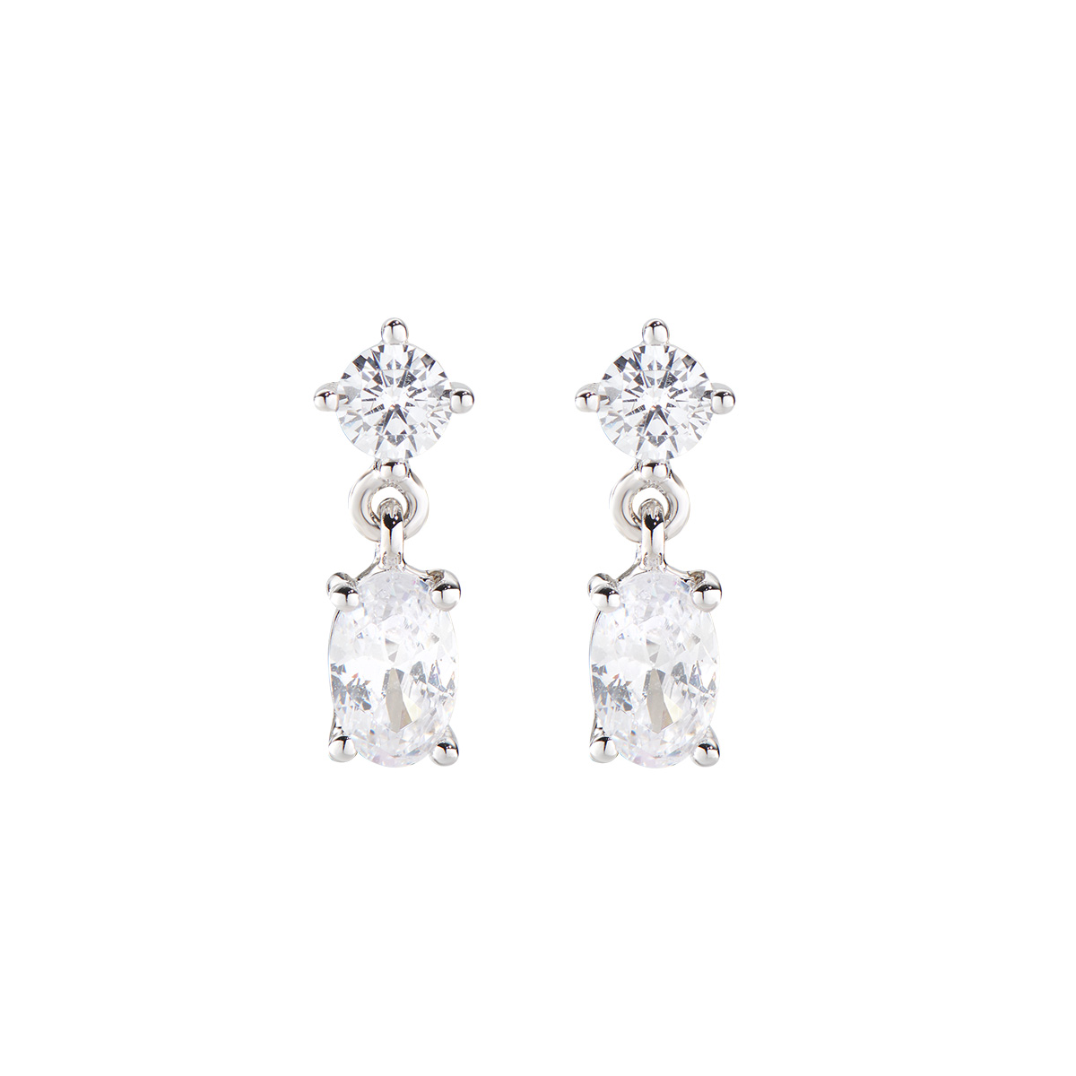 Sterling silver earrings with white zirconia – Rhodium – height 1 cm