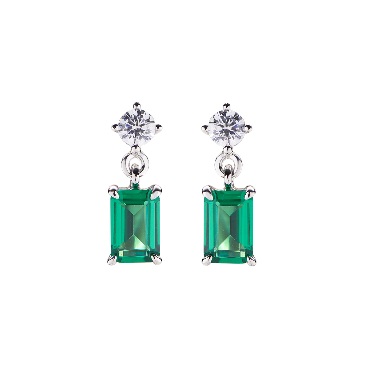 Sterling silver earrings with green zirconia – Rhodium – height 1 cm