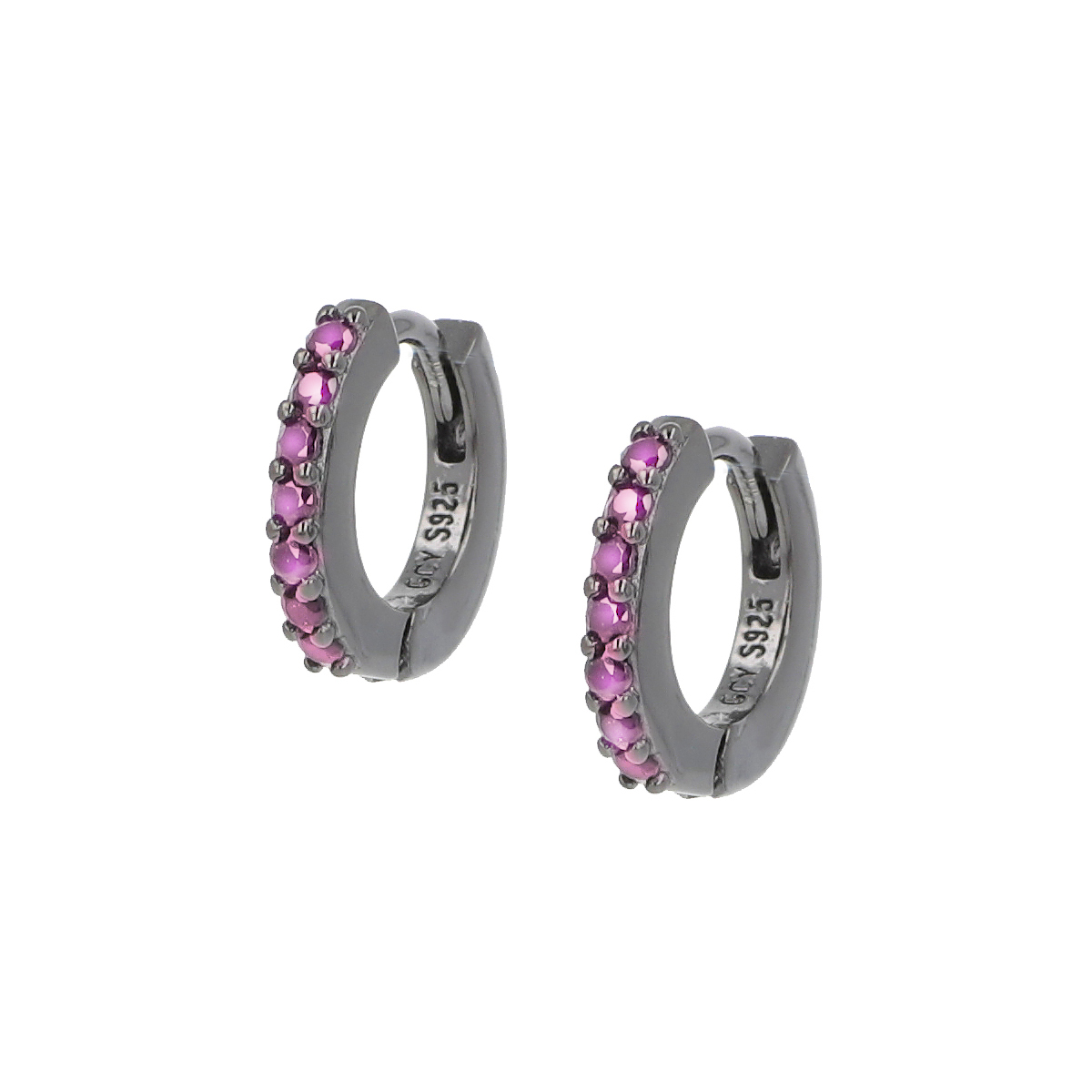 Sterling silver earrings with red zirconia – Ruthenium – Ø 1,2 cm – Ø 1,5 mm zirconia
