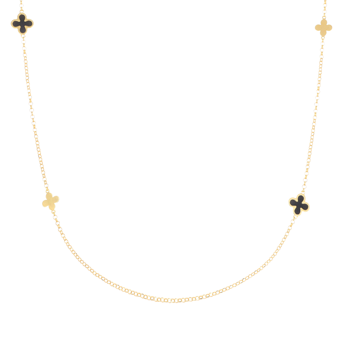 Sterling silver necklace with black mother-of-pearl – Gold – length 80 cm – charm 9 mm