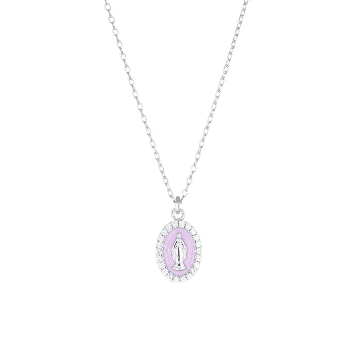 Sterling silver necklace with pink enamel and white zirconia – Rhodium – length 40 + 5 cm – charm 1,5 cm