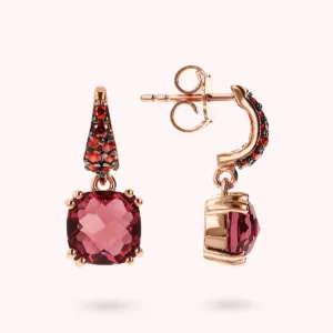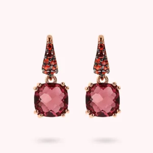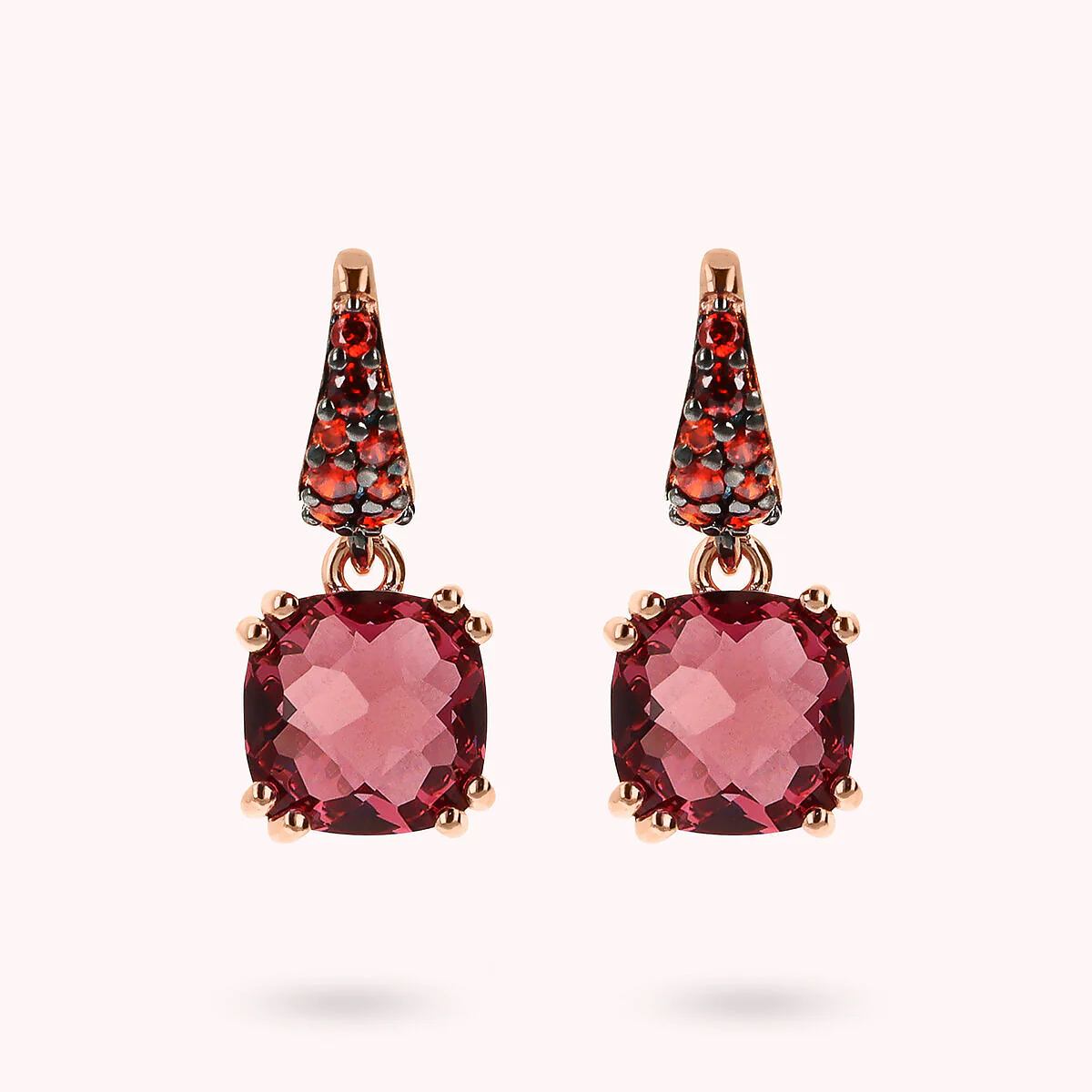Bronzallure pendant earrings made of Golden Rosé alloy, 18kt rose gold plated, embellished with pavé counter-link and two square nano crystal stones (8×8 mm); hook closure.
