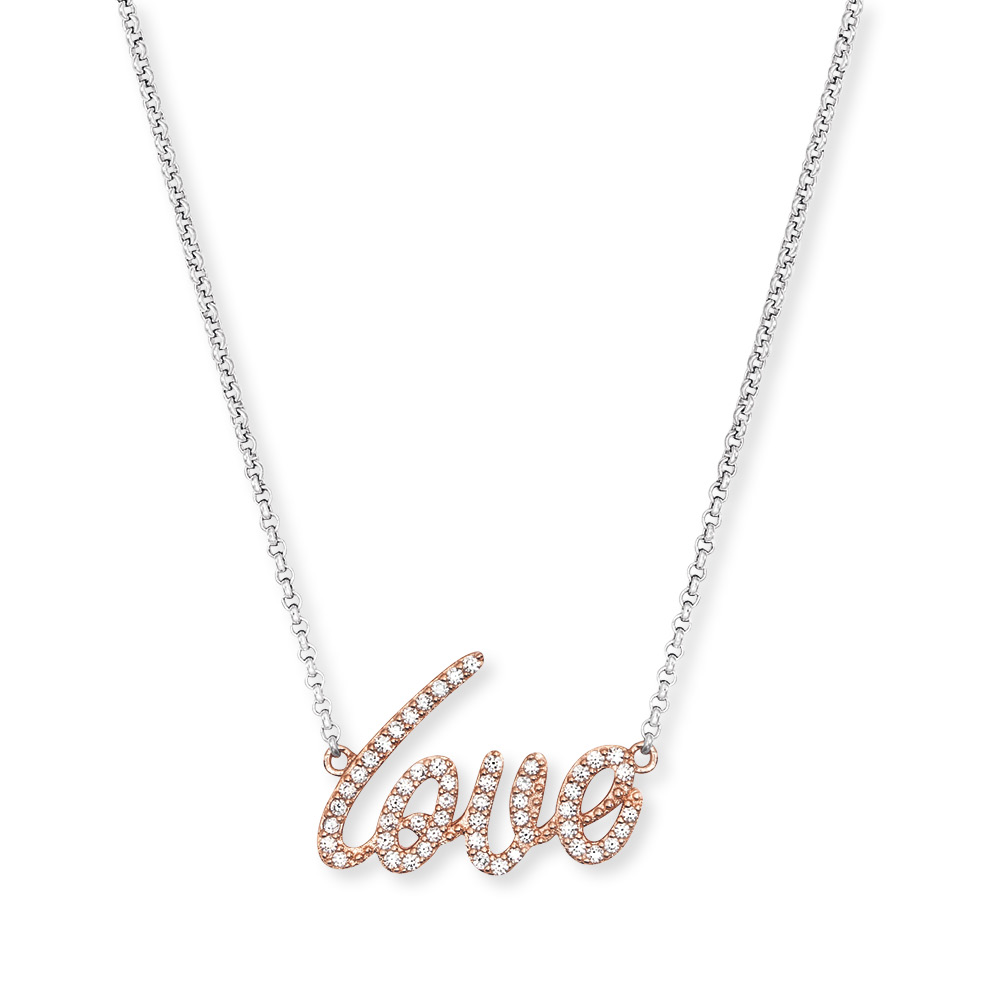 Necklace Love with 53 white cubic zirconia | 925 sterling silver rhodium / rose plated | 13.7 mm | length 40 + 4 cm