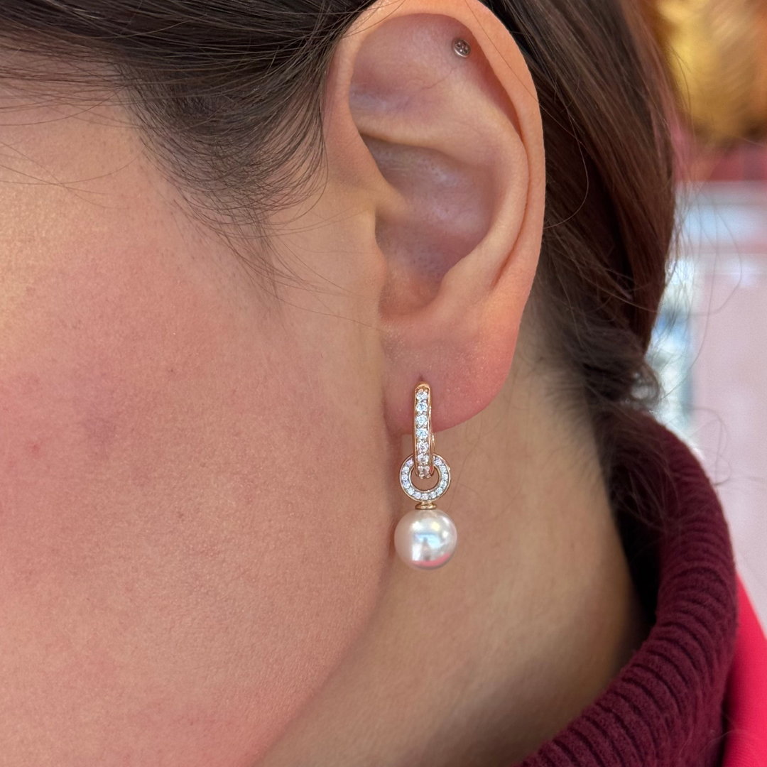 TI SENTO ear charms. These ear charms are made rose gold plated sterling silver and are set with zirconias. Thanks to the white pearls, these ear charms go well with other TI SENTO pieces with white pearls. Wear these ear charms on earrings of your choice to create your own combinations.