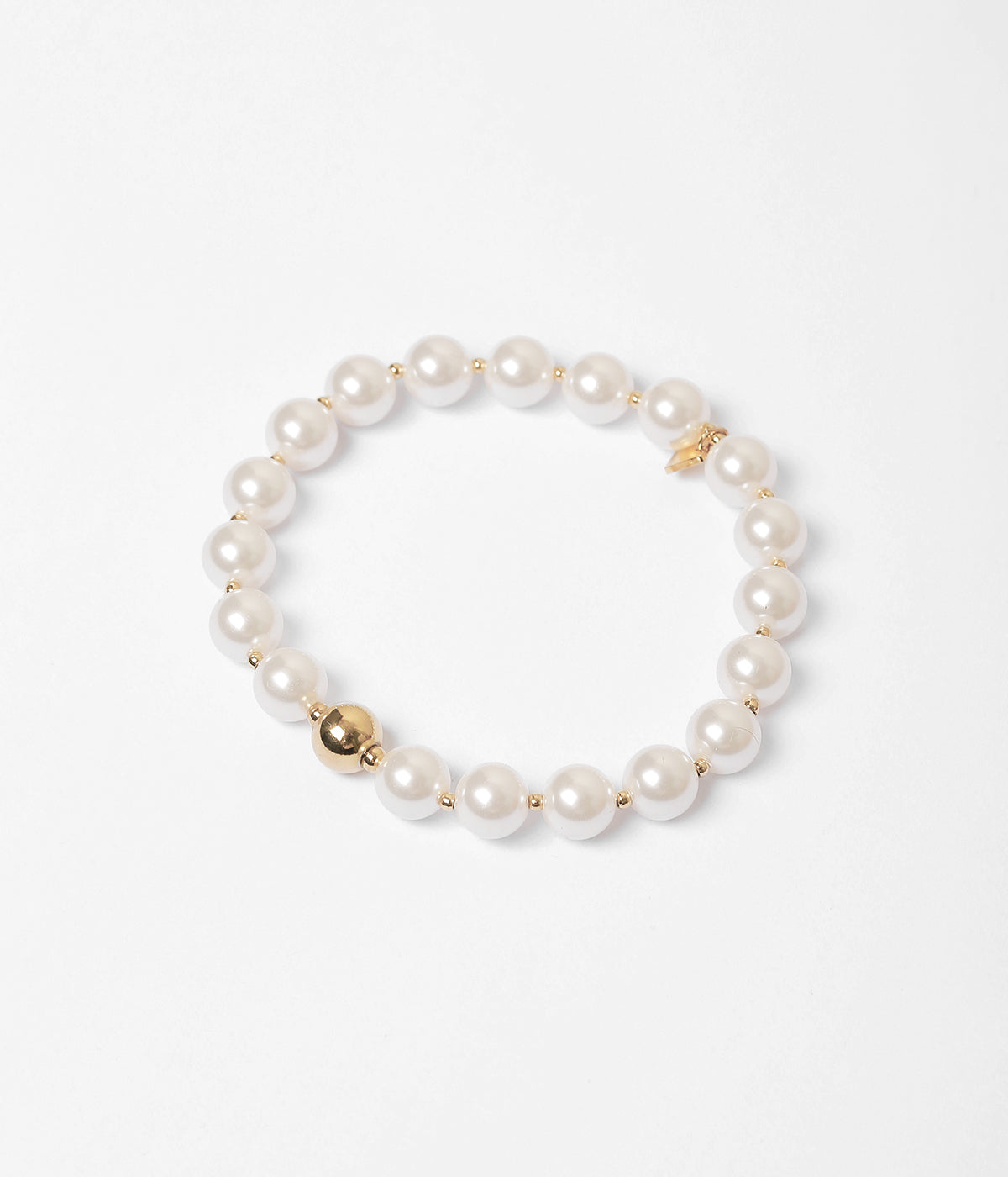 Marla bracelet, gold-plated steel, mother-of-pearl bead, elastic band, 8mm wide