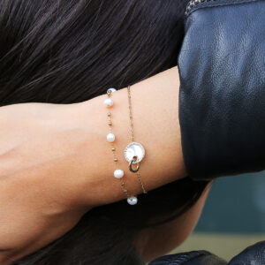 Zoe bracelet, gold-plated steel with cultured pearl, 15+3cm