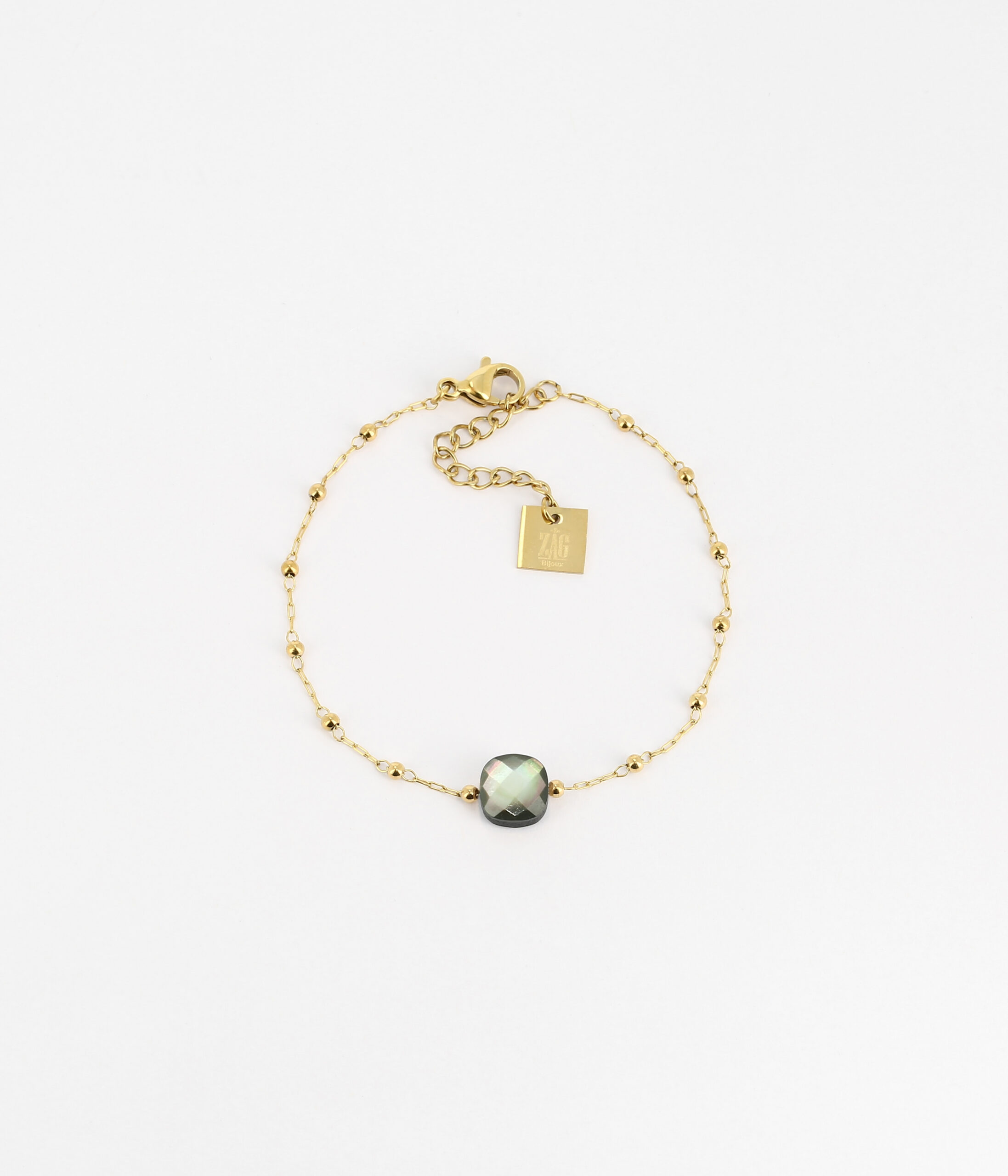 Pablo bracelet, gold-plated steel with grey mother-of-pearl, 15+3cm