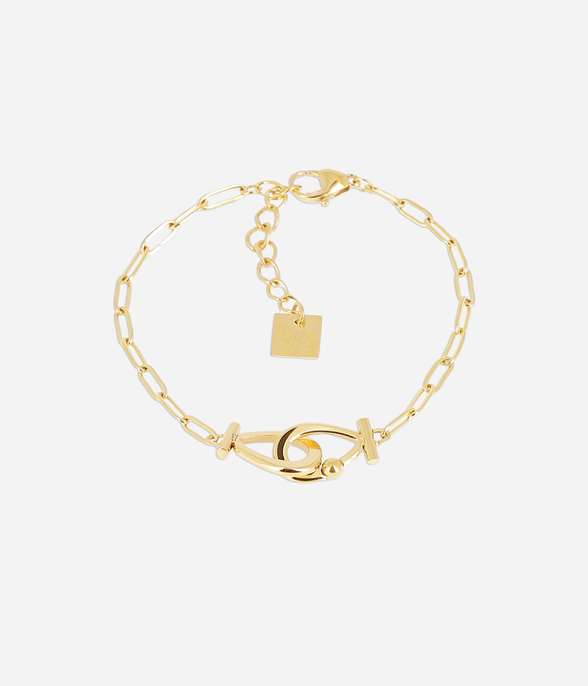 Paulette bracelet, gold-plated steel, zirconium, 15+3cm, 9x25mm thick